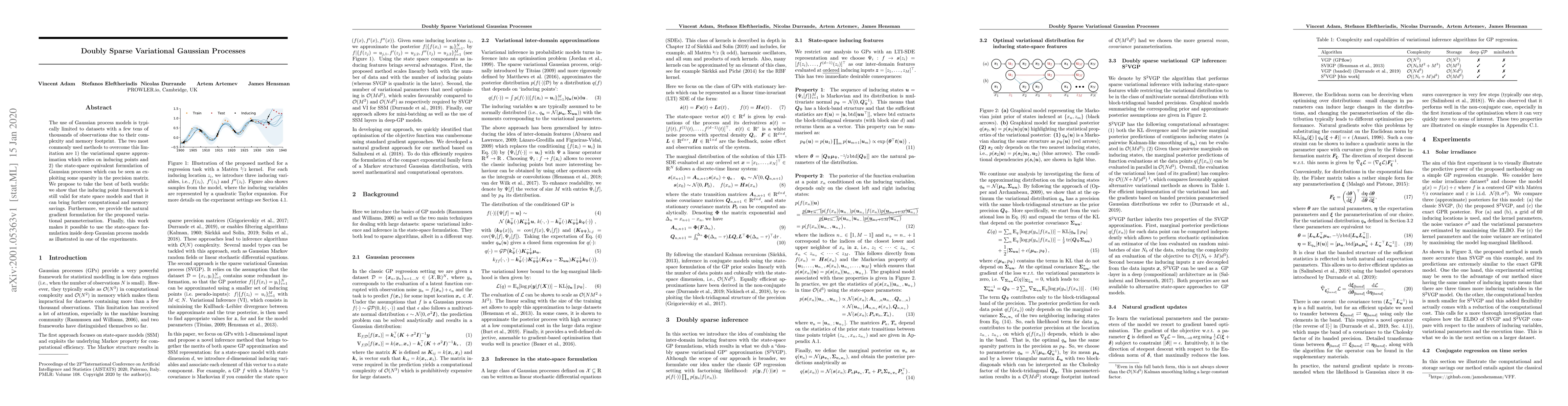 This paper proposes a doubly sparse variational Gaussian process model that combines variational sparse approximation and state-space formulations to enhance computational efficiency and memory usage, enabling the use of state-space models in deep Gaussian processes. It also introduces a natural gradient formulation for the proposed parameterization.