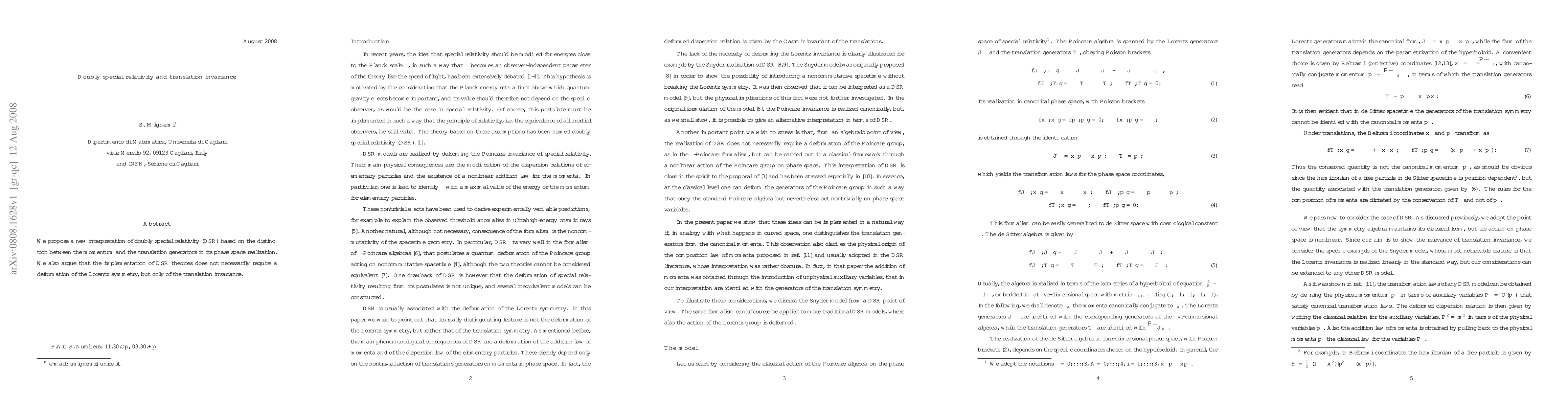 This paper proposes a new interpretation of doubly special relativity (DSR) focusing on the distinction between momentum and translation generators, suggesting that DSR can be implemented by modifying translation invariance rather than Lorentz symmetry.