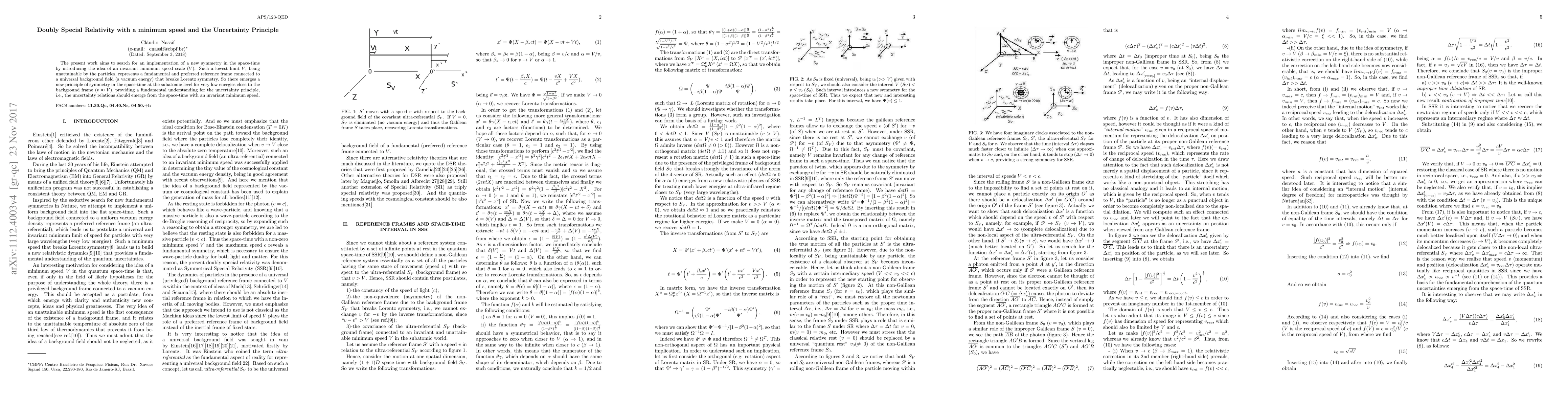 This paper proposes a new symmetry in space-time by introducing an invariant minimum speed scale, $V$, which represents a fundamental reference frame connected to a vacuum energy, breaking Lorentz symmetry. This new principle explains the uncertainty principle at subatomic levels, suggesting that uncertainty relations arise from the space-time with an invariant minimum speed.
