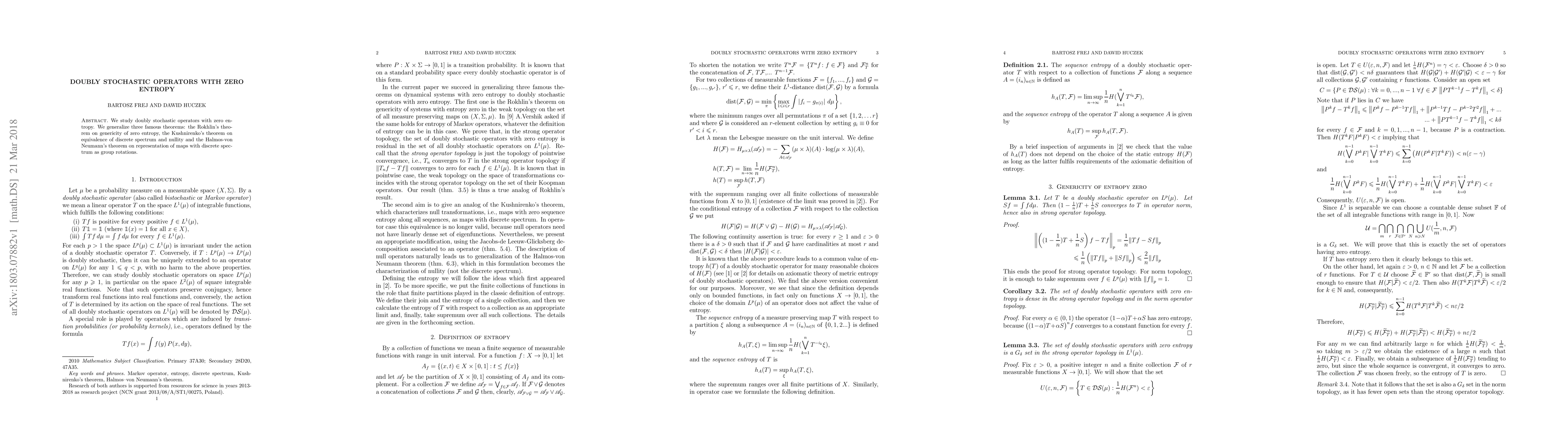 Summary: This paper explores doubly stochastic operators with zero entropy, generalizing three significant theorems: Rokhlin's theorem, Kushnirenko's theorem, and Halmos-von Neumann's theorem, to enhance understanding of their properties and equivalences.