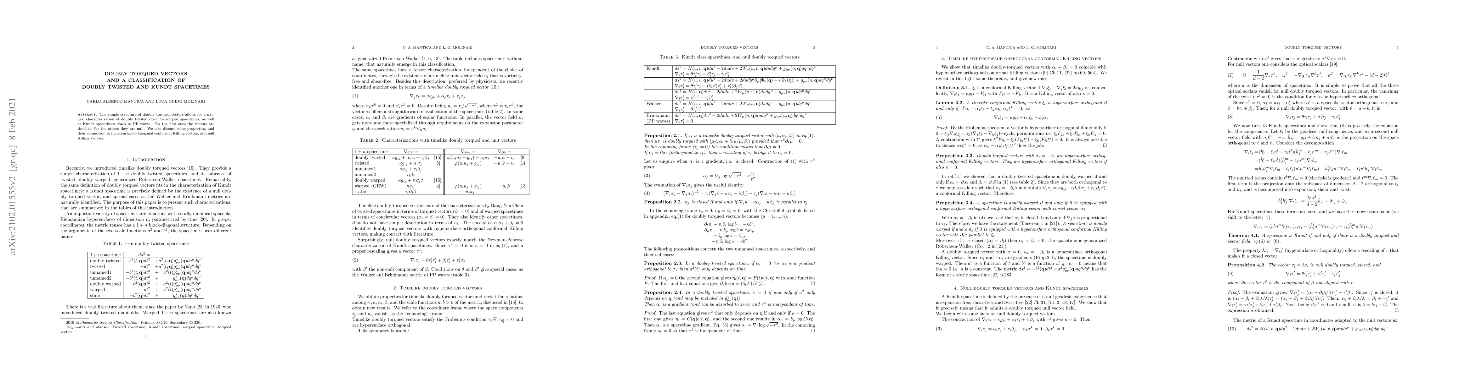 This paper classifies doubly twisted and Kundt spacetimes using doubly torqued vectors, distinguishing between timelike vectors for twisted spacetimes and null vectors for Kundt spacetimes. It also explores their properties and connections to hypersurface orthogonal conformal Killing vectors and null Killing vectors.