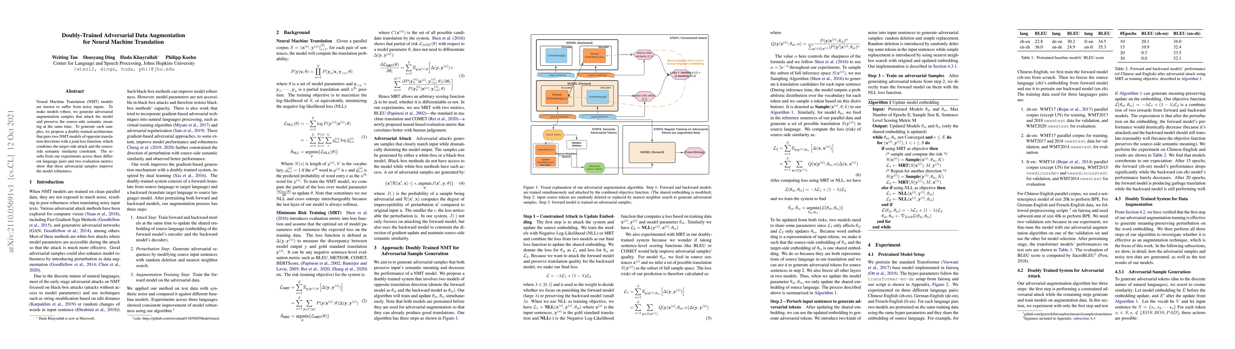 This paper proposes a doubly-trained adversarial data augmentation method for Neural Machine Translation, using a paired model architecture to generate samples that enhance robustness while preserving semantic meaning. Experimental results across three language pairs demonstrate improved model robustness.
