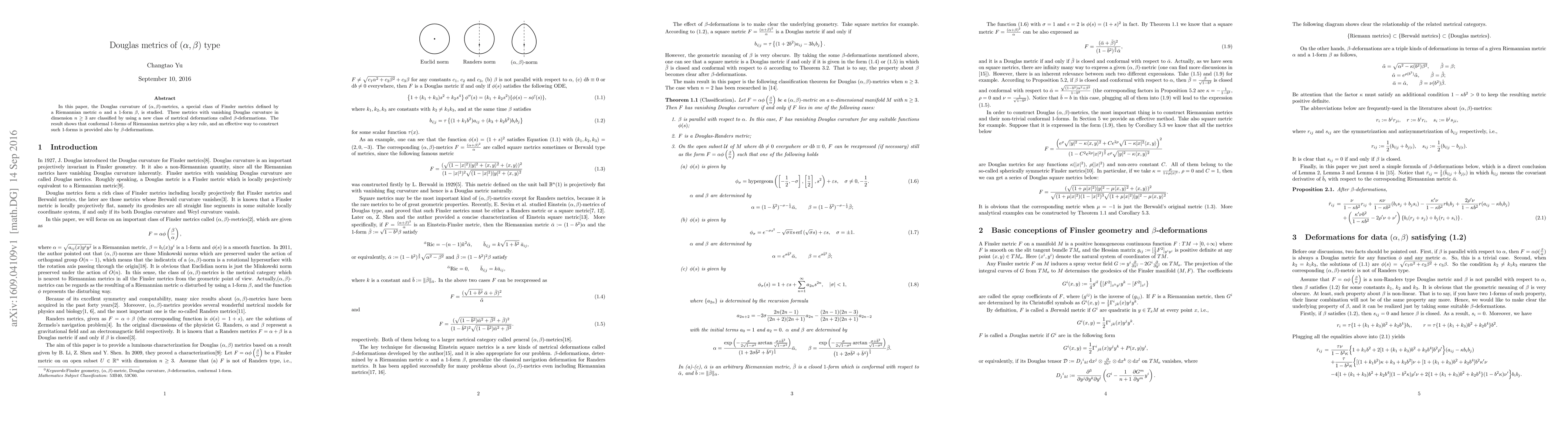 This paper classifies (\alpha,\beta)-metrics with vanishing Douglas curvature in dimensions n ≥ 3 using a novel \beta-deformation technique, highlighting the crucial role of conformal 1-forms derived from Riemannian metrics and providing a method for constructing these 1-forms.