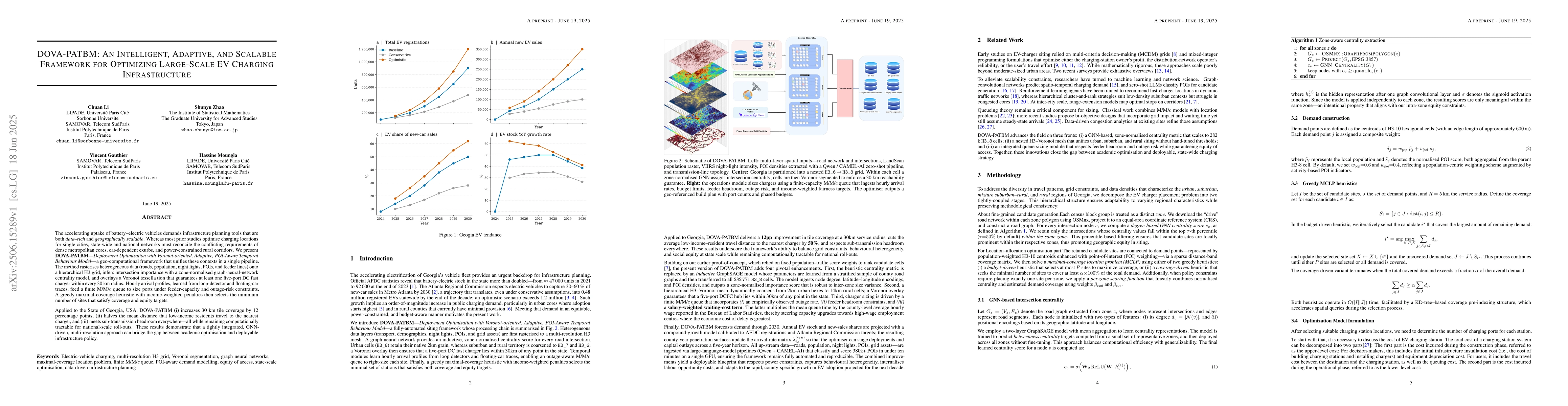 The accelerating uptake of battery-electric vehicles demands infrastructure planning tools that are both data-rich and geographically scalable. Whereas most prior studies optimise charging locations for single cities, state-wide and national networks must reconcile the conflicting requirements of dense metropolitan cores, car-dependent exurbs, and power-constrained rural corridors. We present DOVA-PATBM (Deployment Optimisation with Voronoi-oriented, Adaptive, POI-Aware Temporal Behaviour Model), a geo-computational framework that unifies these contexts in a single pipeline. The method rasterises heterogeneous data (roads, population, night lights, POIs, and feeder lines) onto a hierarchical H3 grid, infers intersection importance with a zone-normalised graph neural network centrality model, and overlays a Voronoi tessellation that guarantees at least one five-port DC fast charger within every 30 km radius. Hourly arrival profiles, learned from loop-detector and floating-car traces, feed a finite M/M/c queue to size ports under feeder-capacity and outage-risk constraints. A greedy maximal-coverage heuristic with income-weighted penalties then selects the minimum number of sites that satisfy coverage and equity targets. Applied to the State of Georgia, USA, DOVA-PATBM (i) increases 30 km tile coverage by 12 percentage points, (ii) halves the mean distance that low-income residents travel to the nearest charger, and (iii) meets sub-transmission headroom everywhere -- all while remaining computationally tractable for national-scale roll-outs. These results demonstrate that a tightly integrated, GNN-driven, multi-resolution approach can bridge the gap between academic optimisation and deployable infrastructure policy.
