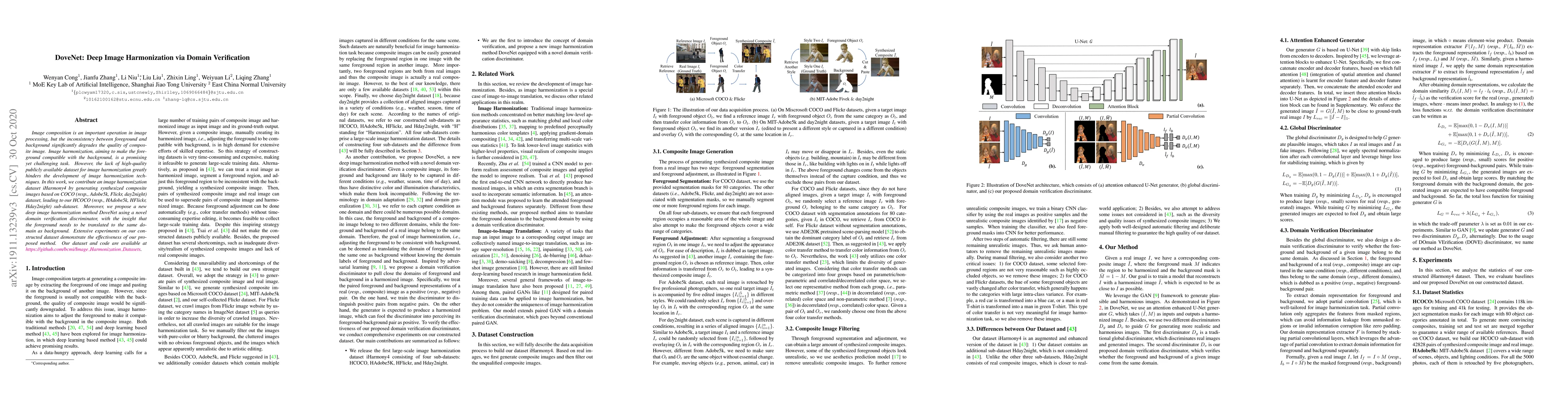 This paper introduces iHarmony4, a new dataset for image harmonization, and proposes DoveNet, a deep learning method using a domain verification discriminator to improve the compatibility between foreground and background in composite images. The method and dataset are demonstrated to be effective through extensive experiments.