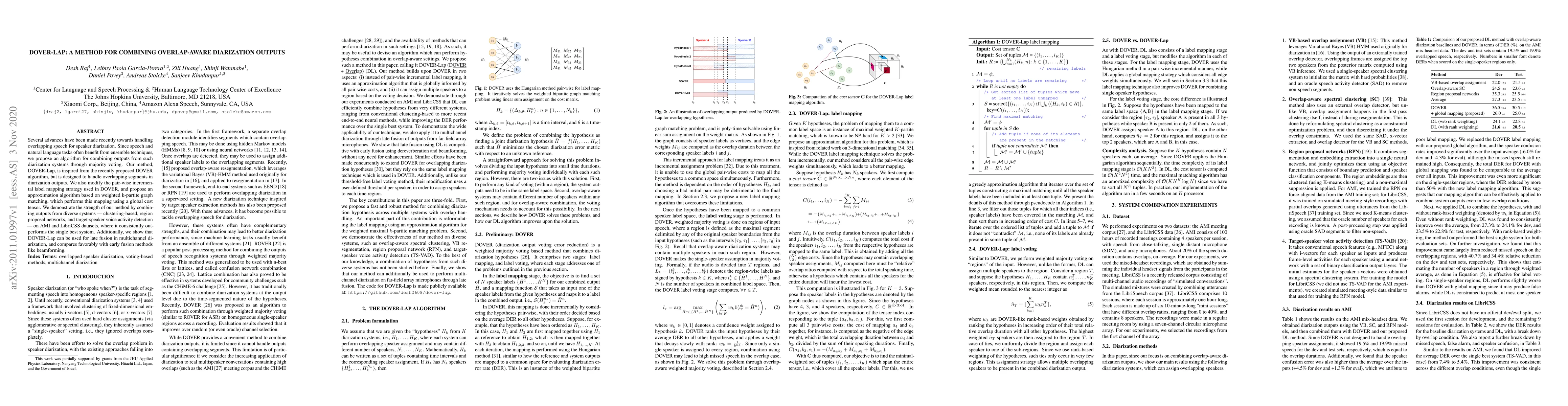 A new algorithm called DOVER-Lap combines overlapping speech outputs from different diarization systems to improve accuracy, outperforming single best systems on various datasets.