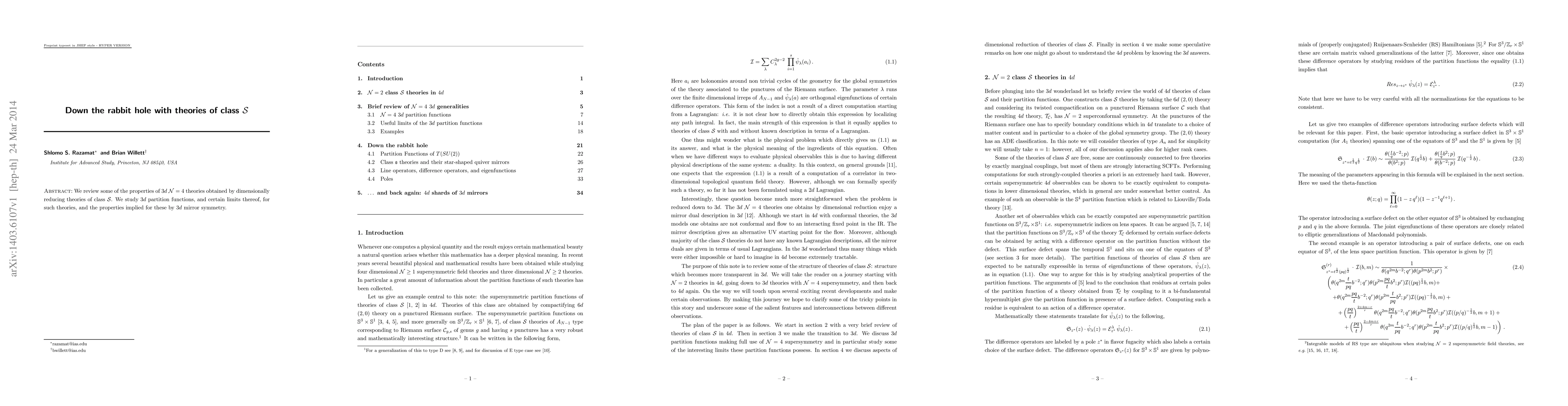 We review some of the properties of 3d N=4 theories obtained by dimensionally reducing theories of class S. We study 3d partition functions, and certain limits thereof, for such theories, and the properties implied for these by 3d mirror symmetry.
