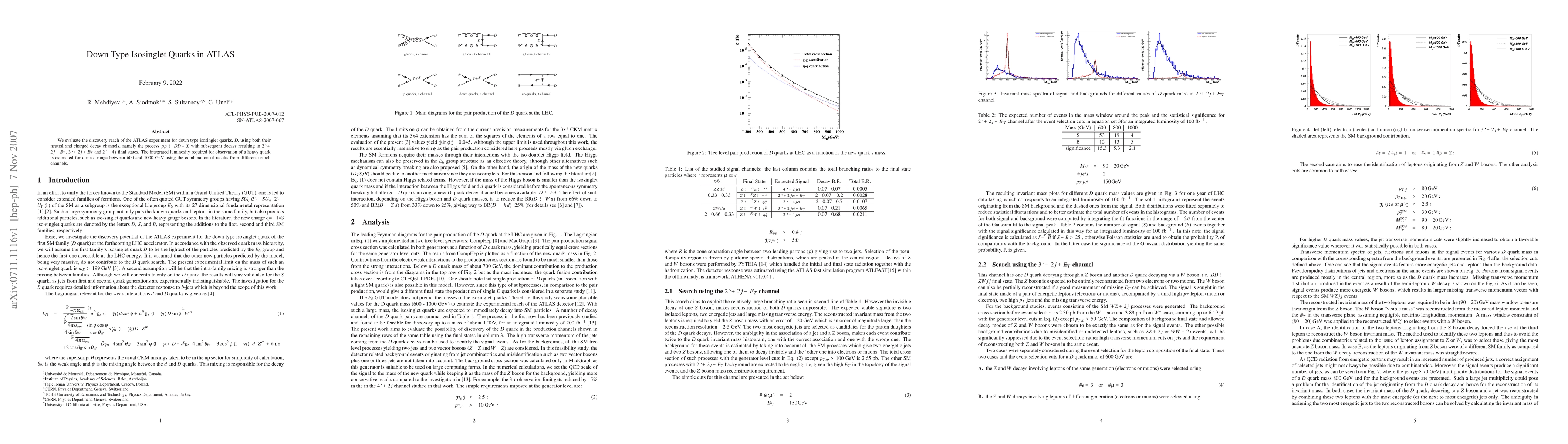 The paper presents a detailed analysis of the ATLAS experiment's capability to discover down type isosinglet quarks through various decay channels, providing a comprehensive study of signal and background processes, and estimating the required integrated luminosity for observation.