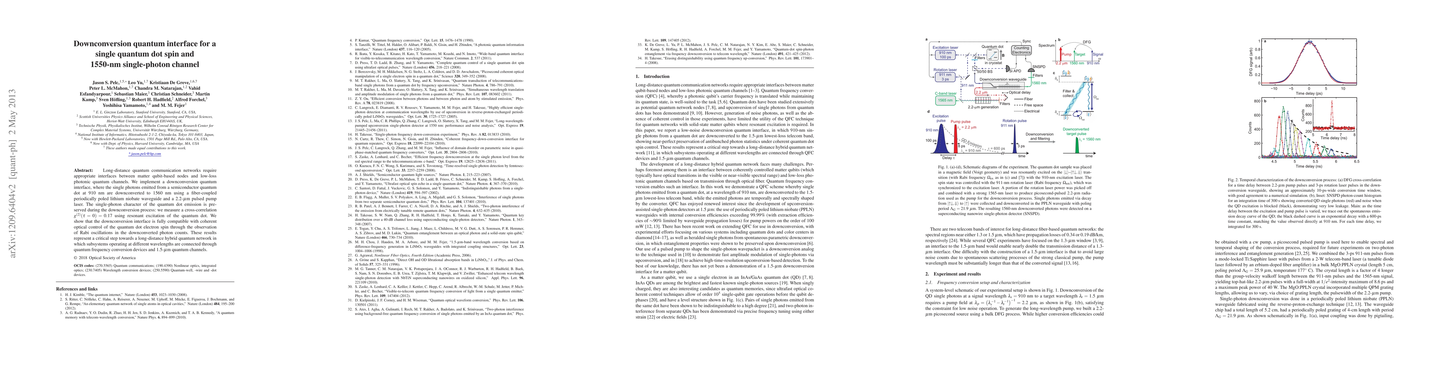 This research paper details the implementation of a downconversion quantum interface that converts single photons from a quantum dot at 910 nm to 1560 nm, preserving the single-photon character. The study demonstrates compatibility with coherent optical control of the quantum dot spin, marking a significant step towards long-distance quantum communication networks.