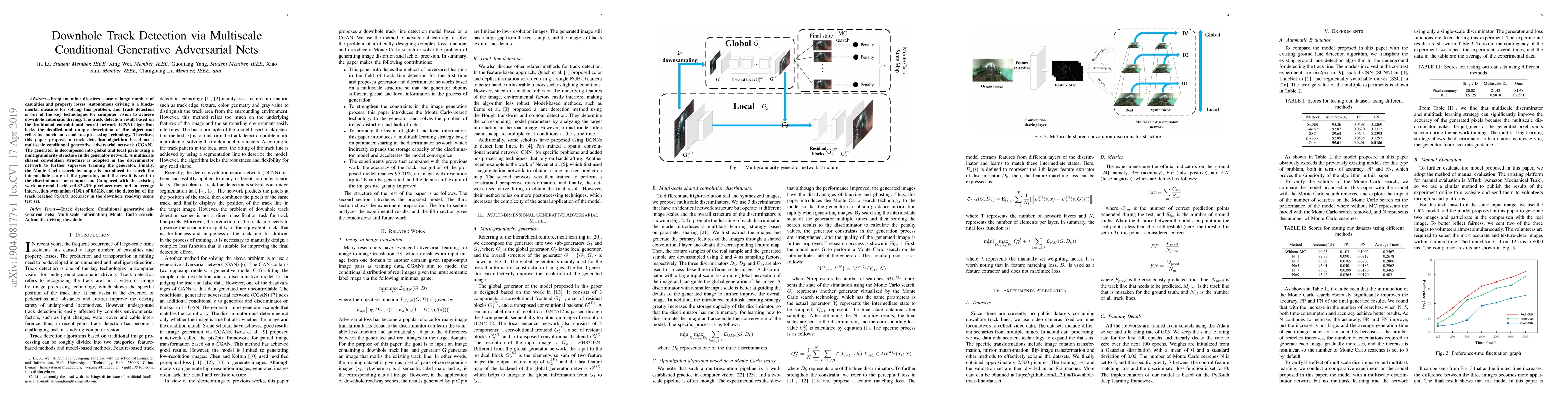 This paper proposes a multiscale conditional generative adversarial network for downhole track detection, achieving 82.43% pixel accuracy and 95.01% track detection accuracy. The method improves upon traditional CNNs by incorporating detailed object descriptions through a multigranularity generator and multiscale shared convolution in the discriminator.
