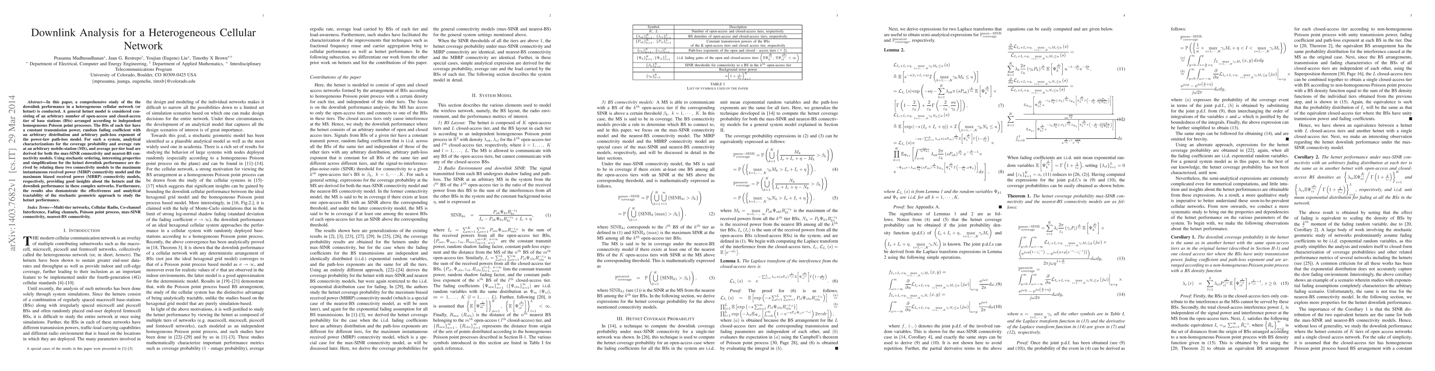 In this paper, a comprehensive study of the the downlink performance in a heterogeneous cellular network (or hetnet) is conducted. A general hetnet model is considered consisting of an arbitrary number of open-access and closed-access tier of base stations (BSs) arranged according to independent homogeneous Poisson point processes. The BSs of each tier have a constant transmission power, random fading coefficient with an arbitrary distribution and arbitrary path-loss exponent of the power-law path-loss model. For such a system, analytical characterizations for the coverage probability and average rate at an arbitrary mobile-station (MS), and average per-tier load are derived for both the max-SINR connectivity and nearest-BS connectivity models. Using stochastic ordering, interesting properties and simplifications for the hetnet downlink performance are derived by relating these two connectivity models to the maximum instantaneous received power (MIRP) connectivity model and the maximum biased received power (MBRP) connectivity models, respectively, providing good insights about the hetnets and the downlink performance in these complex networks. Furthermore, the results also demonstrate the effectiveness and analytical tractability of the stochastic geometric approach to study the hetnet performance.