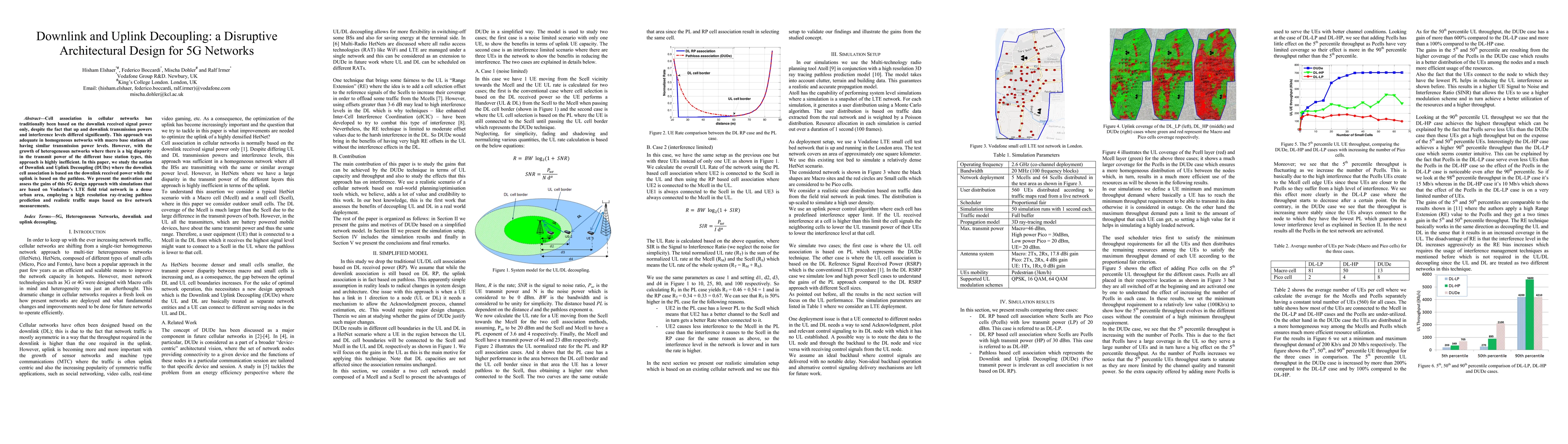 This paper proposes Downlink and Uplink Decoupling (DUDe) as a novel architectural design for 5G networks, decoupling downlink cell association based on received power from uplink association based on pathloss. Simulations using Vodafone's LTE field trial data show significant efficiency gains in heterogeneous networks.