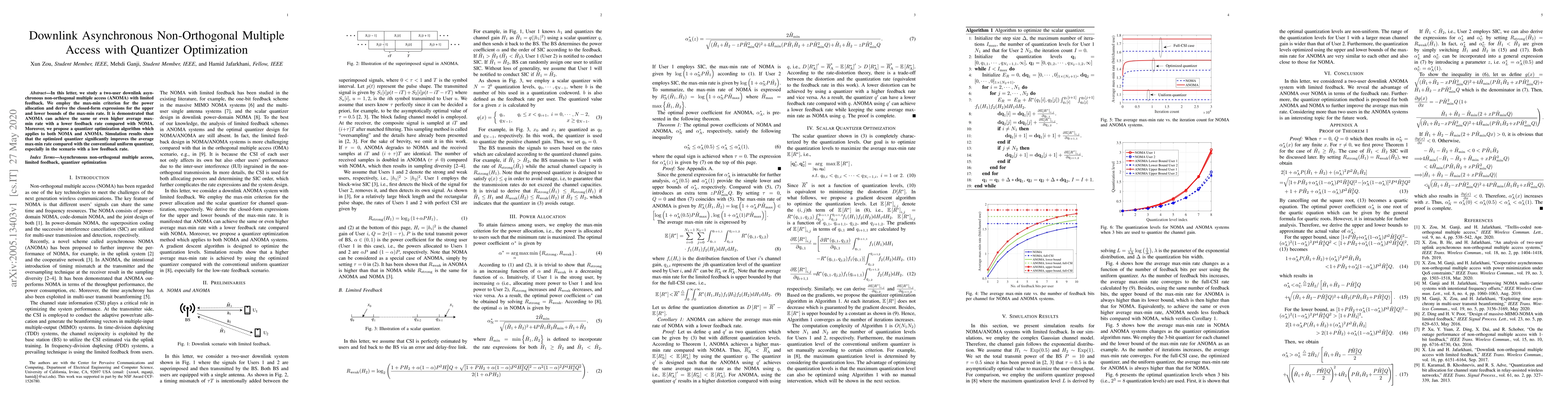 In this letter, we study a two-user downlink asynchronous non-orthogonal multiple access (ANOMA) with limited feedback. We employ the max-min criterion for the power allocation and derive the closed-form expressions for the upper and lower bounds of the max-min rate. It is demonstrated that ANOMA can achieve the same or even higher average maxmin rate with a lower feedback rate compared with NOMA. Moreover, we propose a quantizer optimization algorithm which applies to both NOMA and ANOMA. Simulation results show that the optimized quantizer significantly improves the average max-min rate compared with the conventional uniform quantizer, especially in the scenario with a low feedback rate.