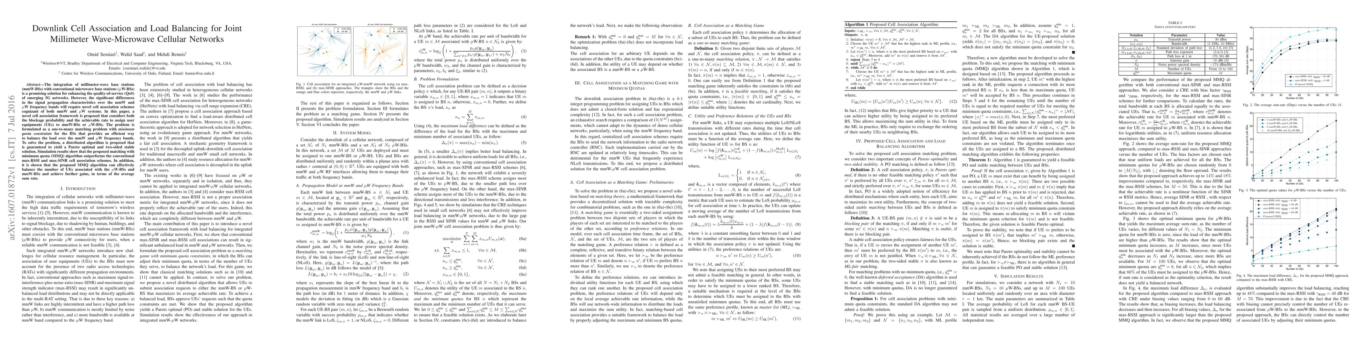A new cell association framework is proposed to balance load between millimeter-wave and microwave base stations in 5G networks, improving quality-of-service and achieving better average sum rates.
