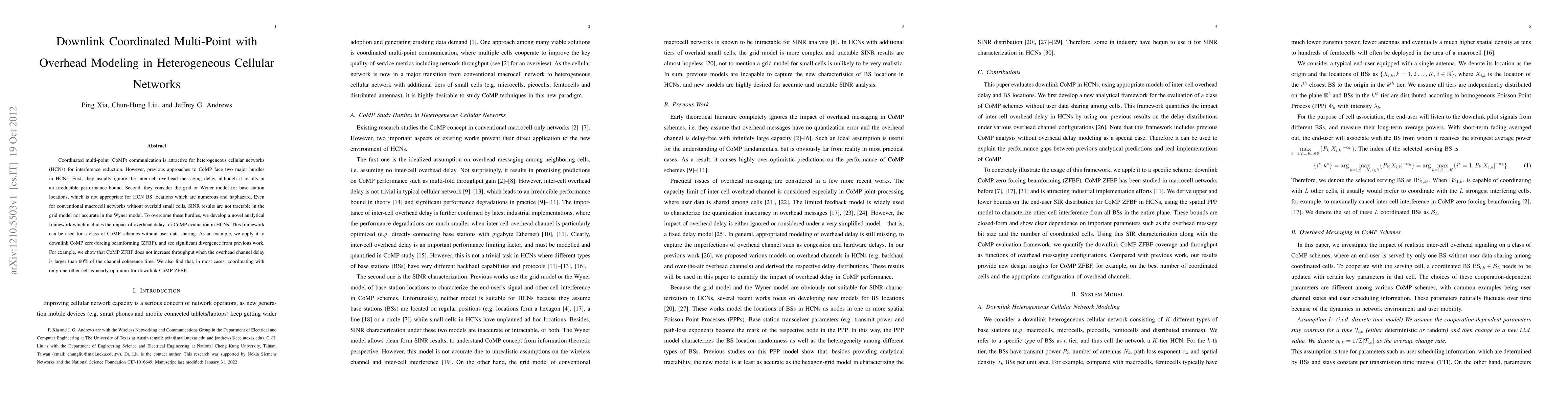 This paper develops an analytical framework to evaluate coordinated multi-point (CoMP) communication in heterogeneous cellular networks (HCNs), addressing the inter-cell overhead messaging delay and inappropriate grid/Wyner models for base station locations. It finds that CoMP zero-forcing beamforming does not increase throughput when overhead delay exceeds 60% of channel coherence time, and coordinating with just one other cell is often optimal.