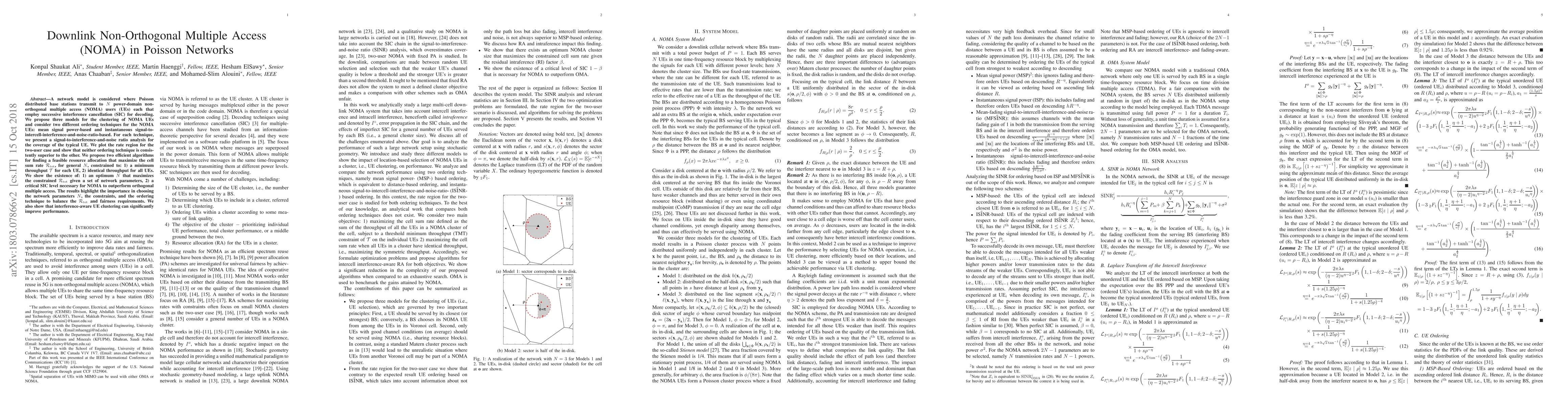 This paper explores downlink NOMA in Poisson networks, proposing three clustering models and two ordering techniques for NOMA users. It analyzes the signal-to-interference-and-noise ratio and presents algorithms to maximize cell sum rate under throughput constraints, highlighting the importance of network parameters and clustering strategies for performance optimization.