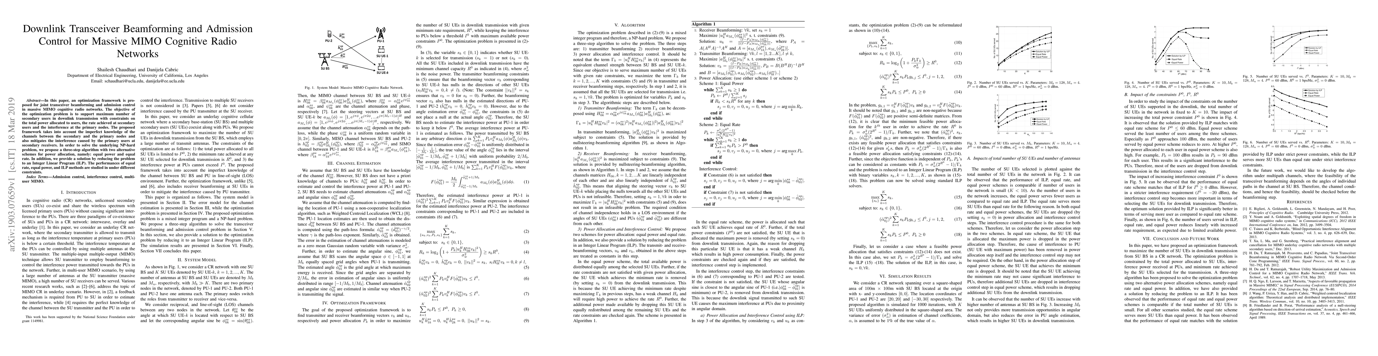 A new framework is proposed for joint transceiver beamforming and admission control in massive MIMO cognitive radio networks to maximize the number of secondary users while minimizing interference.
