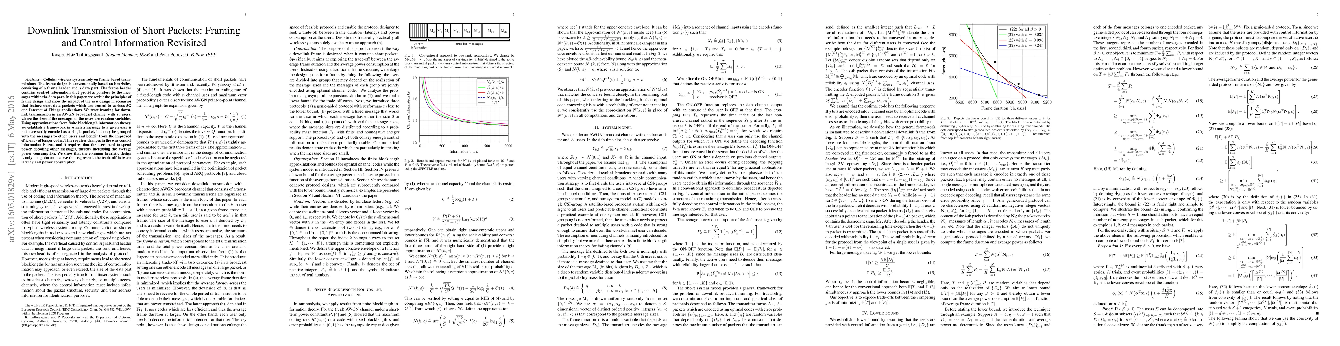 The paper revisits the principles of frame design in cellular wireless systems, focusing on scenarios with short data packets crucial for 5G and IoT applications. It uses approximations from finite blocklength information theory to establish a framework for framing in an AWGN broadcast channel with K users, where message sizes are random variables.