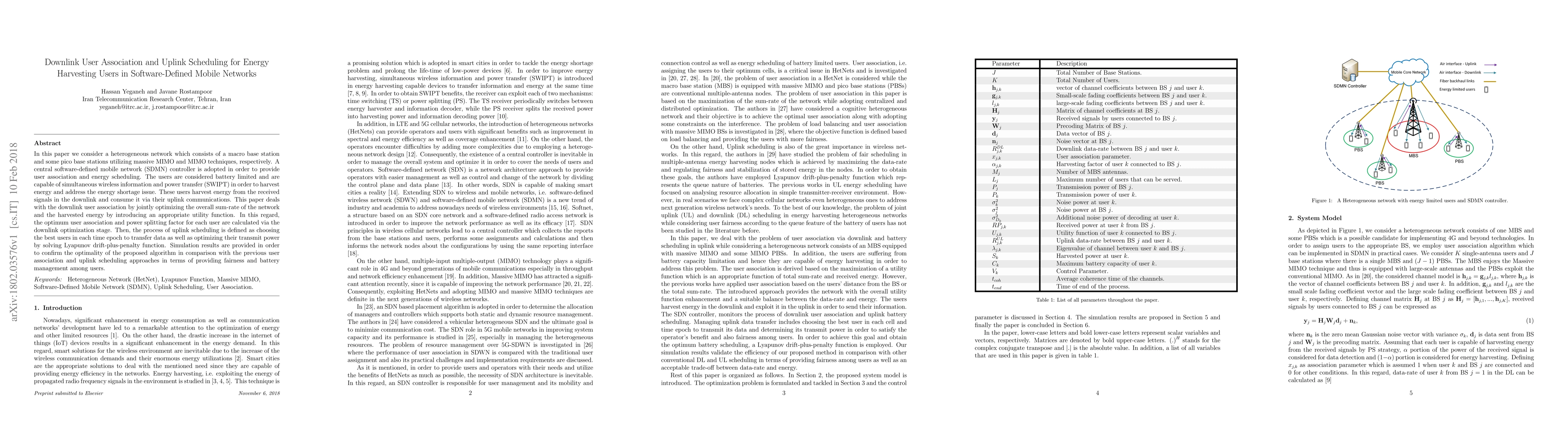 This paper optimizes downlink user association and uplink scheduling in a heterogeneous network using software-defined mobile networks, focusing on energy harvesting users. The proposed method maximizes network sum-rate and harvested energy, achieving optimal user association and scheduling via a utility function and Lyapunov optimization.