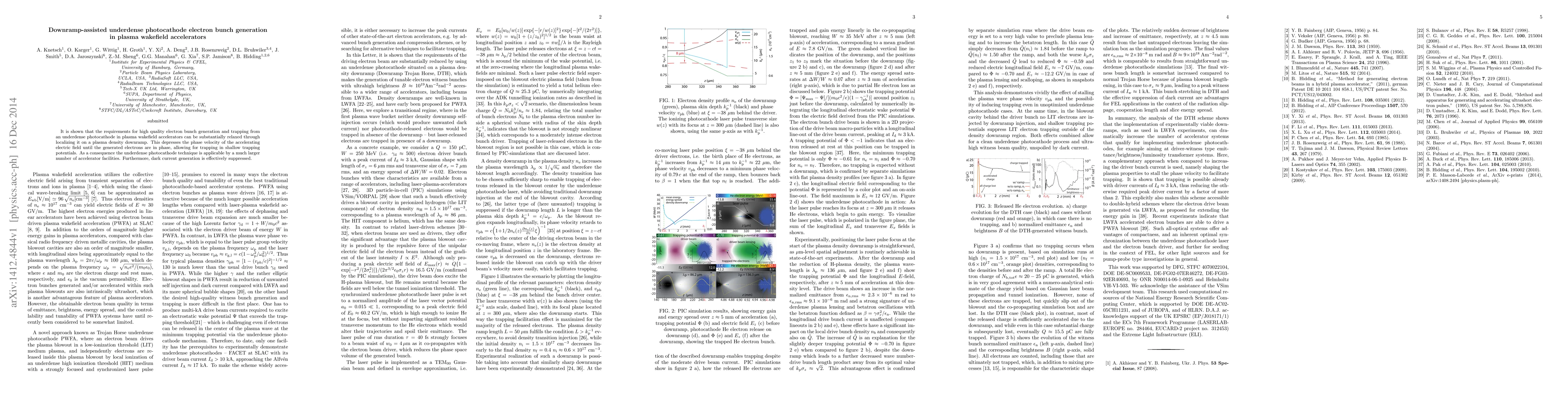It is shown that the requirements for high quality electron bunch generation and trapping from an underdense photocathode in plasma wakefield accelerators can be substantially relaxed through localizing it on a plasma density downramp. This depresses the phase velocity of the accelerating electric field until the generated electrons are in phase, allowing for trapping in shallow trapping potentials. As a consequence the underdense photocathode technique is applicable by a much larger number of accelerator facilities. Furthermore, dark current generation is effectively suppressed.