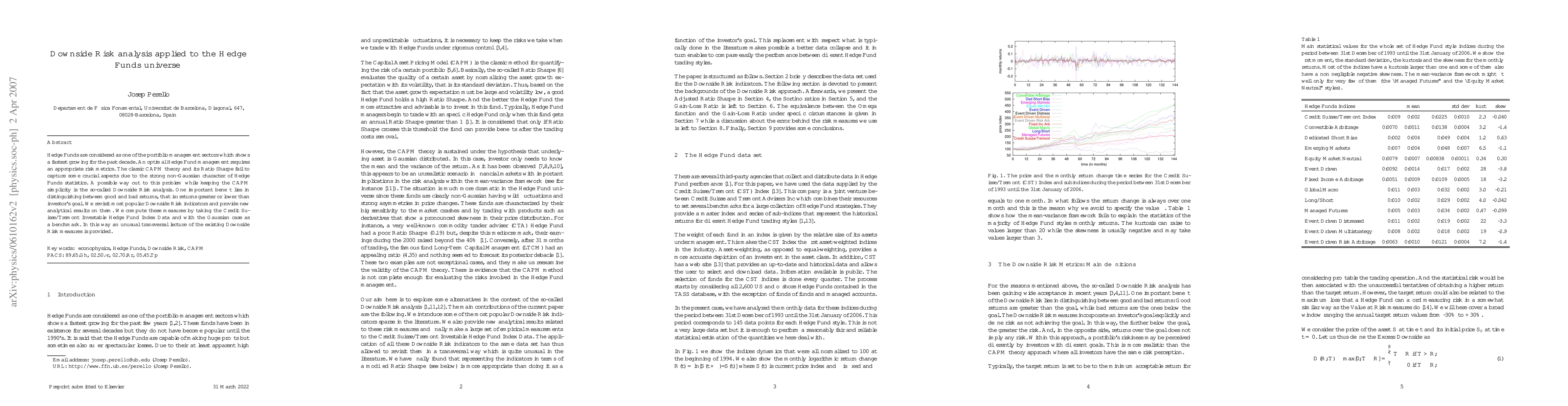 Hedge Funds are considered as one of the portfolio management sectors which shows a fastest growing for the past decade. An optimal Hedge Fund management requires an appropriate risk metrics. The classic CAPM theory and its Ratio Sharpe fail to capture some crucial aspects due to the strong non-Gaussian character of Hedge Funds statistics. A possible way out to this problem while keeping the CAPM simplicity is the so-called Downside Risk analysis. One important benefit lies in distinguishing between good and bad returns, that is: returns greater or lower than investor's goal. We revisit most popular Downside Risk indicators and provide new analytical results on them. We compute these measures by taking the Credit Suisse/Tremont Investable Hedge Fund Index Data and with the Gaussian case as a benchmark. In this way an unusual transversal lecture of the existing Downside Risk measures is provided.
