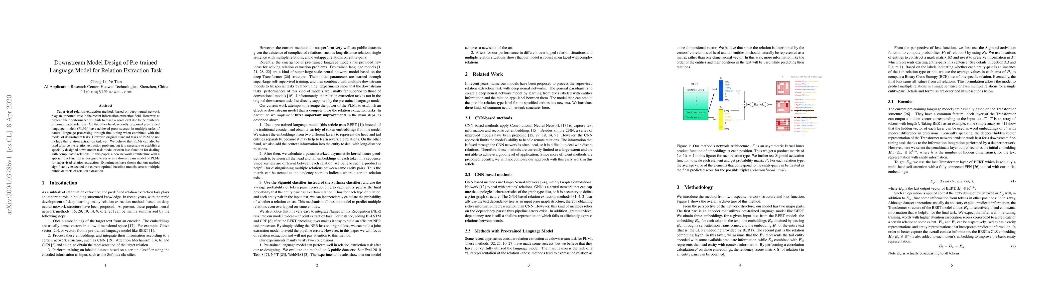 This paper proposes a novel network architecture and loss function for fine-tuning pre-trained language models (PLMs) to enhance supervised relation extraction. The designed downstream model significantly outperforms existing baselines across various public datasets.
