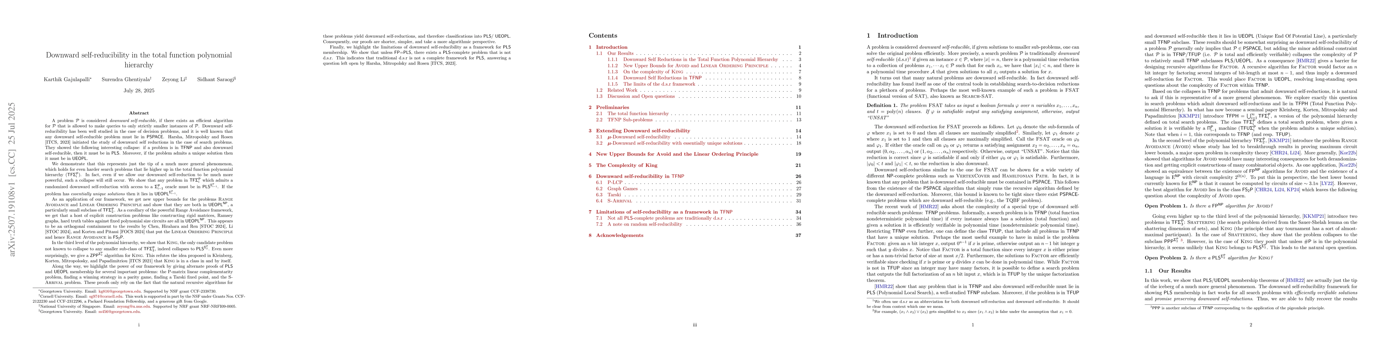 A problem $\mathcal{P}$ is considered downward self-reducible, if there exists an efficient algorithm for $\mathcal{P}$ that is allowed to make queries to only strictly smaller instances of $\mathcal{P}$. Downward self-reducibility has been well studied in the case of decision problems, and it is well known that any downward self-reducible problem must lie in $\mathsf{PSPACE}$. Harsha, Mitropolsky and Rosen [ITCS, 2023] initiated the study of downward self reductions in the case of search problems. They showed the following interesting collapse: if a problem is in $\mathsf{TFNP}$ and also downward self-reducible, then it must be in $\mathsf{PLS}$. Moreover, if the problem admits a unique solution then it must be in $\mathsf{UEOPL}$. We demonstrate that this represents just the tip of a much more general phenomenon, which holds for even harder search problems that lie higher up in the total function polynomial hierarchy ($\mathsf{TF\Sigma_i^P}$). In fact, even if we allow our downward self-reduction to be much more powerful, such a collapse will still occur. We show that any problem in $\mathsf{TF\Sigma_i^P}$ which admits a randomized downward self-reduction with access to a $\mathsf{\Sigma_{i-1}^P}$ oracle must be in $\mathsf{PLS}^{\mathsf{\Sigma_{i-1}^P}}$. If the problem has \textit{essentially unique solutions} then it lies in $\mathsf{UEOPL}^{\mathsf{\Sigma_{i-1}^P}}$. As one (out of many) application of our framework, we get new upper bounds for the problems $\mathrm{Range Avoidance}$ and $\mathrm{Linear Ordering Principle}$ and show that they are both in $\mathsf{UEOPL}^{\mathsf{NP}}$.
