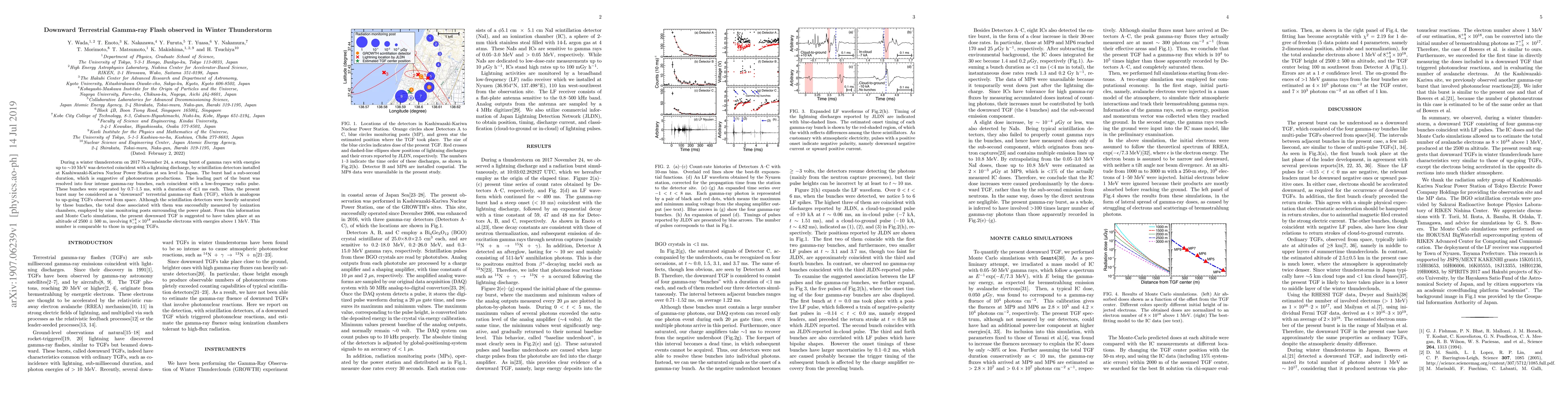 A winter thunderstorm in Japan on November 24, 2017, produced a downward terrestrial gamma-ray flash (TGF) with gamma rays up to 10 MeV, detected by scintillation detectors. The event involved four intense gamma-ray bunches, suggesting photoneutron production and an altitude of occurrence around 2.5 km.