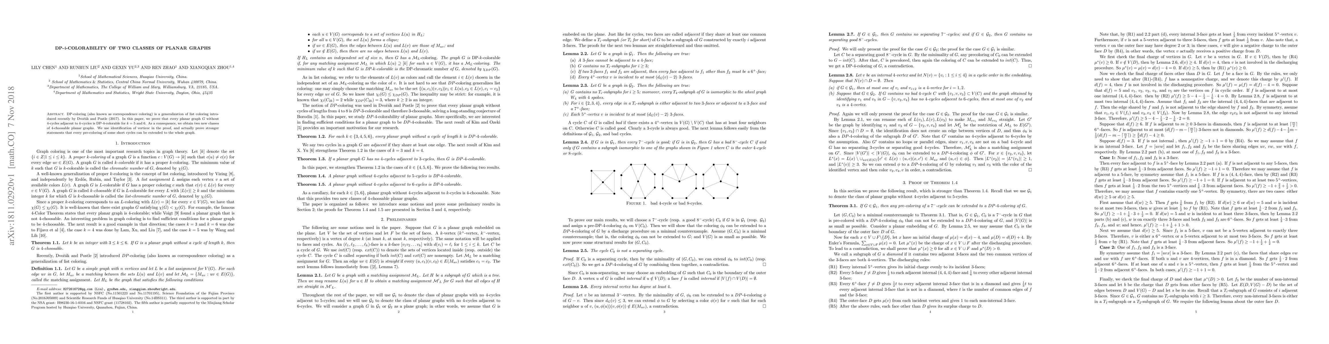 The novelty of this work lies in the identification of new classes of 4-choosable planar graphs through DP-4-colorability proofs, which were achieved by leveraging intricate discharging arguments and careful structural analysis.