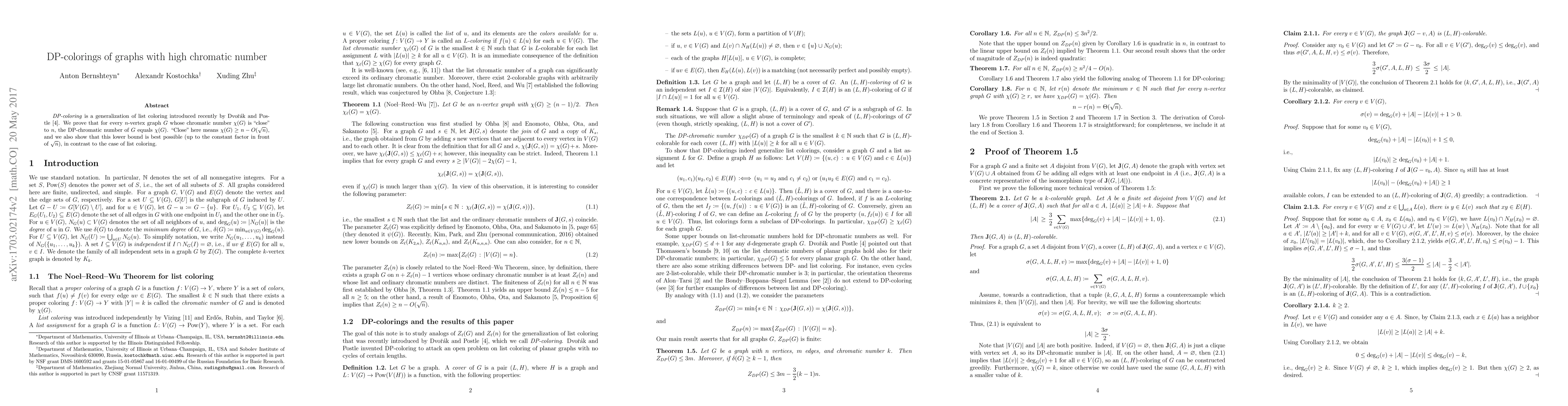 This paper proves that for graphs with chromatic number close to the number of vertices, the DP-chromatic number equals the chromatic number, and demonstrates that this lower bound is optimal, differing from the behavior observed in list coloring.