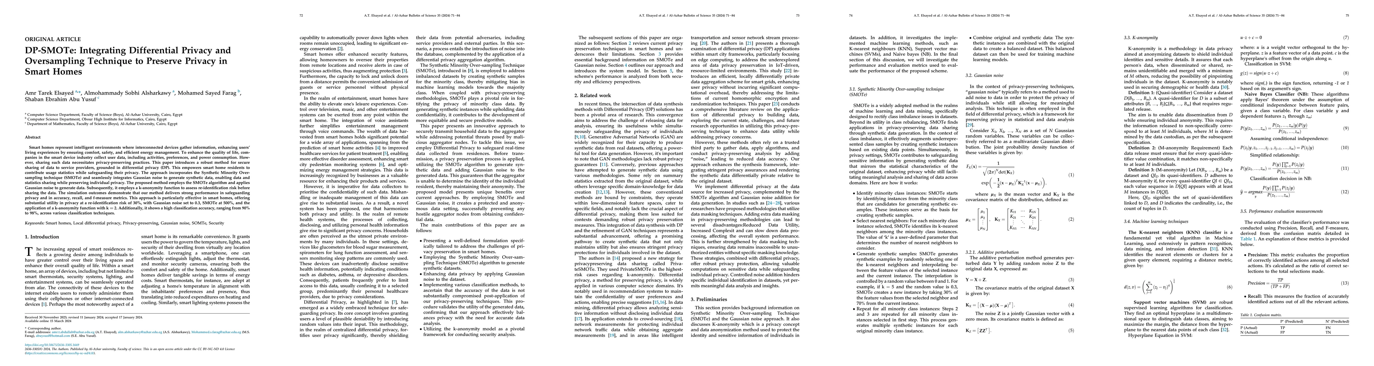 This work stands out by integrating differential privacy with SMOTE, specifically tailored for smart home data, and evaluating it using k-anonymity, providing a comprehensive privacy-preserving solution.