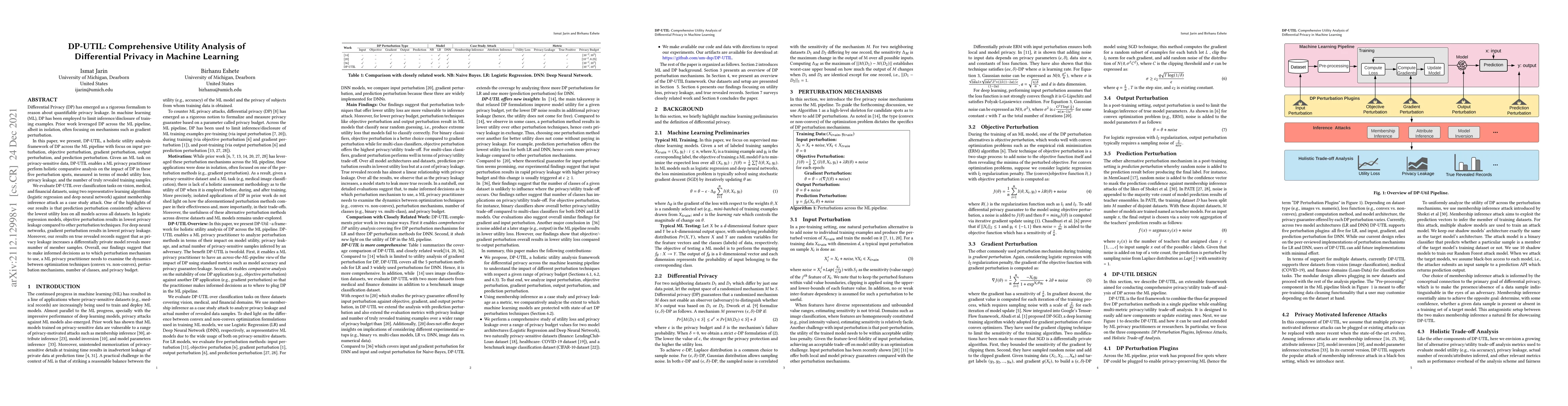 A new framework called DP-UTIL provides a comprehensive utility analysis of differential privacy in machine learning, helping practitioners choose the best perturbation mechanism for their tasks.