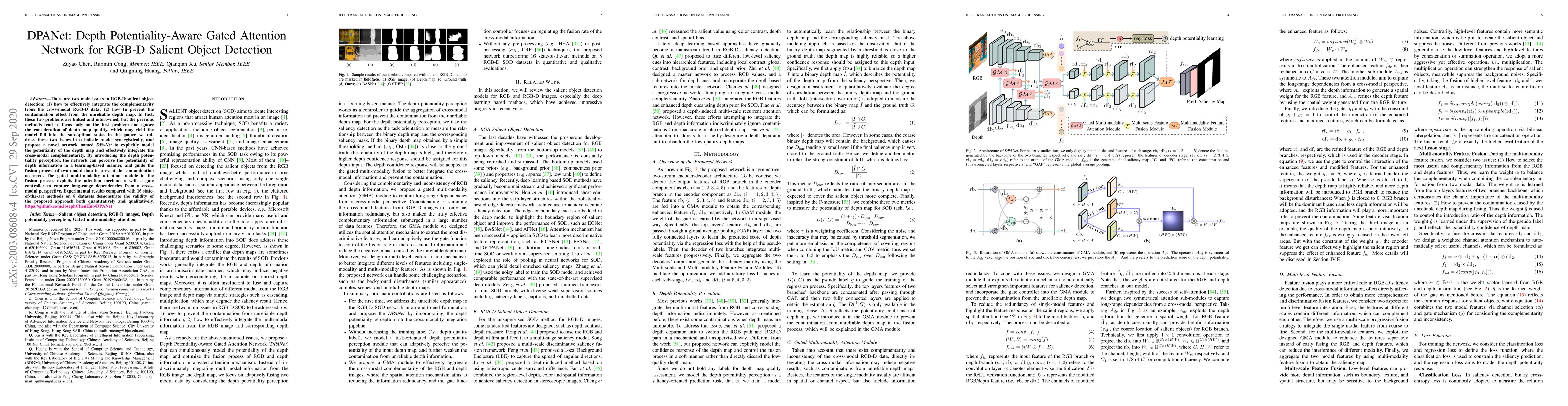 DPANet addresses the integration of RGB-D data and depth map reliability in salient object detection through a novel gated attention network that models depth potentiality and prevents contamination. Experimental results show superior performance compared to 15 state-of-the-art methods across 8 datasets.
