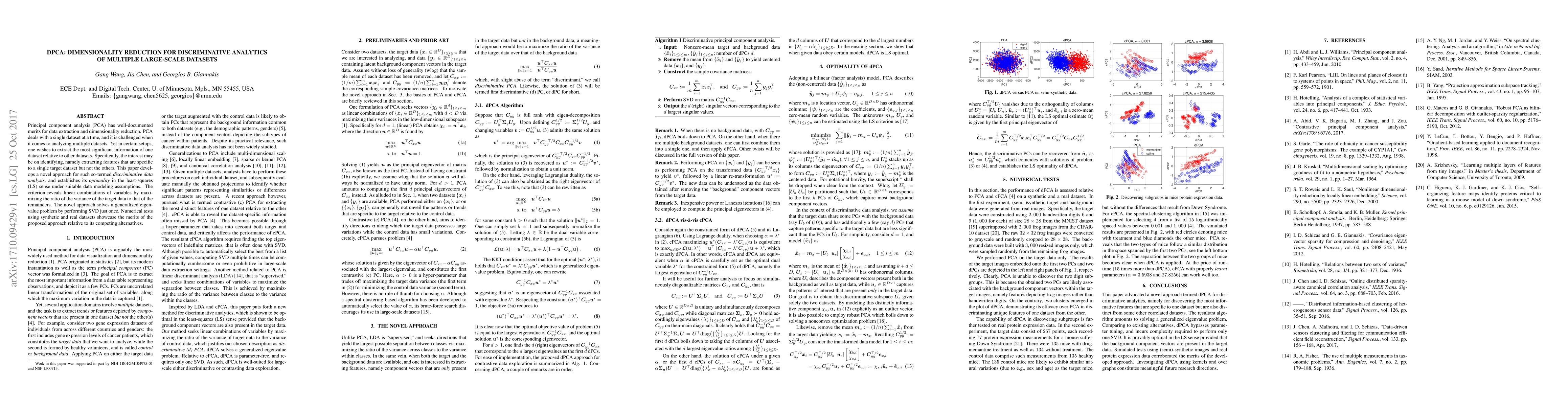 This paper introduces DPCA for discriminative analytics across multiple large-scale datasets, optimizing the extraction of significant features specific to a target dataset. It establishes optimality in the least-squares sense and demonstrates superior performance through numerical tests.