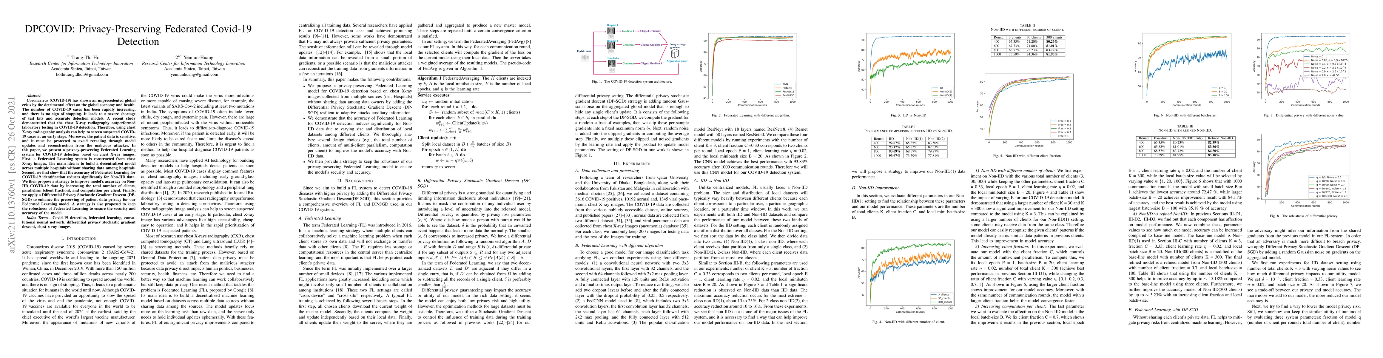 This paper introduces DPCOVID, a privacy-preserving Federated Learning system for COVID-19 detection using chest X-ray images. It focuses on building a decentralized model across multiple hospitals without sharing patient data, employing Differential Privacy Stochastic Gradient Descent (DP-SGD) to enhance privacy and proposing strategies to maintain model accuracy on Non-IID data.