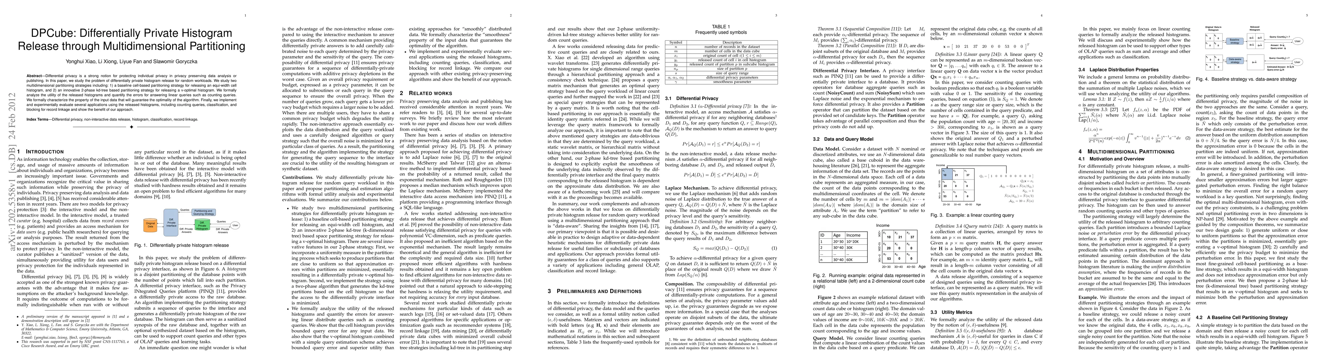 This paper proposes two multidimensional partitioning strategies for differentially private histogram release, analyzing their utility and error rates for linear queries. It evaluates the effectiveness of these strategies through applications like counting queries and record linkage.