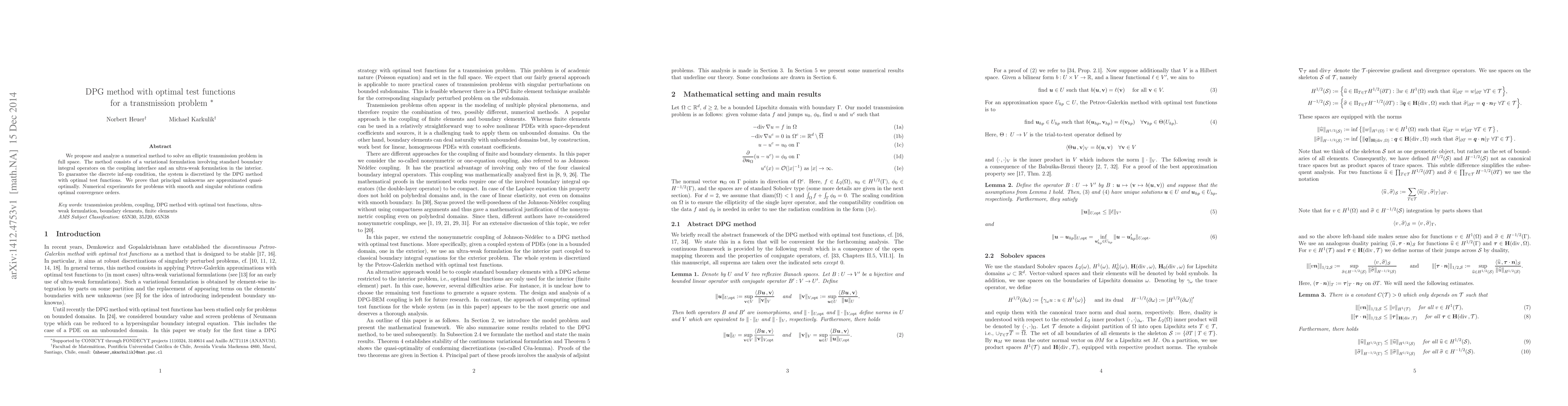 This paper proposes a DPG method with optimal test functions to solve an elliptic transmission problem, ensuring quasi-optimal approximation of principal unknowns and demonstrating optimal convergence through numerical experiments for both smooth and singular solutions.