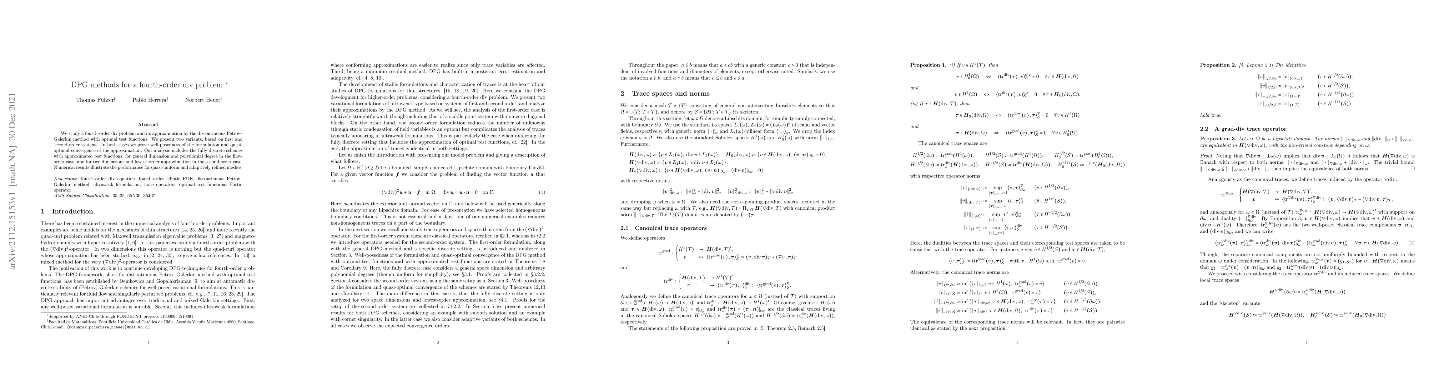 We study a fourth-order div problem and its approximation by the discontinuous Petrov-Galerkin method with optimal test functions. We present two variants, based on first and second-order systems. In both cases we prove well-posedness of the formulation and quasi-optimal convergence of the approximation. Our analysis includes the fully-discrete schemes with approximated test functions, for general dimension and polynomial degree in the first-order case, and for two dimensions and lowest-order approximation in the second-order case. Numerical results illustrate the performance for quasi-uniform and adaptively refined meshes.