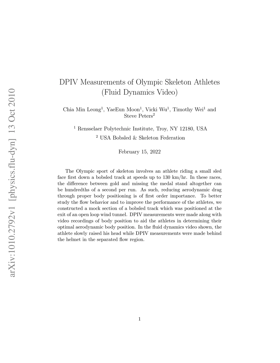 The Olympic sport of skeleton involves an athlete riding a small sled face first down a bobsled track at speeds up to 130 km/hr. In these races, the difference between gold and missing the medal stand altogether can be hundredths of a second per run. As such, reducing aerodynamic drag through proper body positioning is of first order importance. To better study the flow behavior and to improve the performance of the athletes, we constructed a mock section of a bobsled track which was positioned at the exit of an open loop wind tunnel. DPIV measurements were made along with video recordings of body position to aid the athletes in determining their optimal aerodynamic body position. In the fluid dynamics video shown, the athlete slowly raised his head while DPIV measurements were made behind the helmet in the separated flow region.