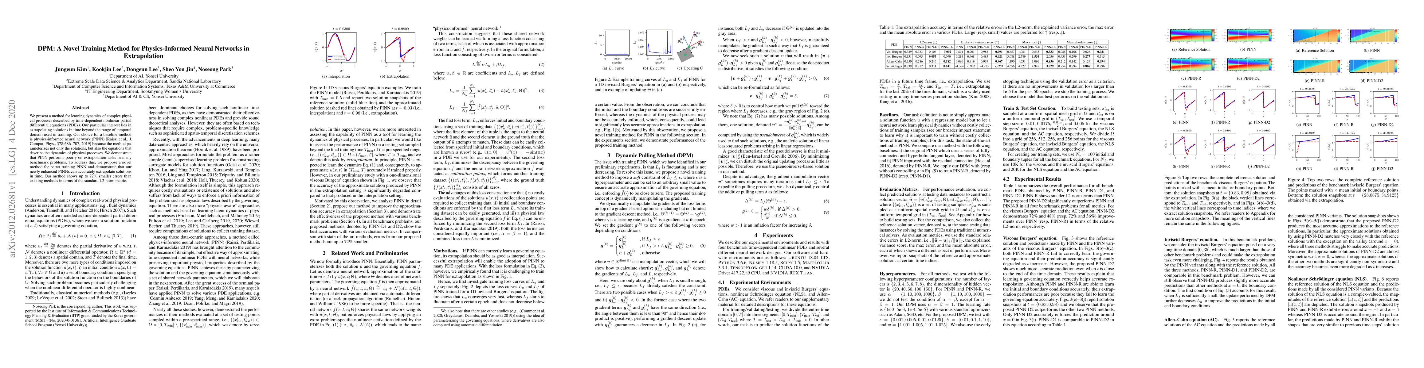 The paper introduces DPM, a novel training method for Physics-Informed Neural Networks (PINNs) to improve extrapolation of solutions in time for complex physical processes governed by nonlinear PDEs. DPM significantly reduces errors by up to 72% compared to existing methods, as demonstrated through benchmark problems.