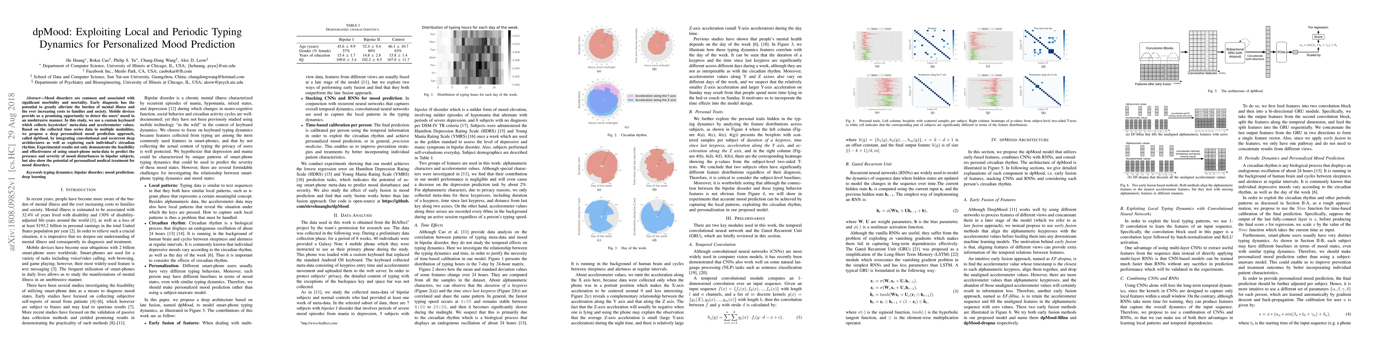 This paper proposes a deep personalized mood prediction method, dpMood, using smartphone meta-data to detect mood disturbances in bipolar subjects. The approach leverages keystroke dynamics and accelerometer data to identify individual circadian rhythms, demonstrating effective early diagnosis potential for mood disorders.