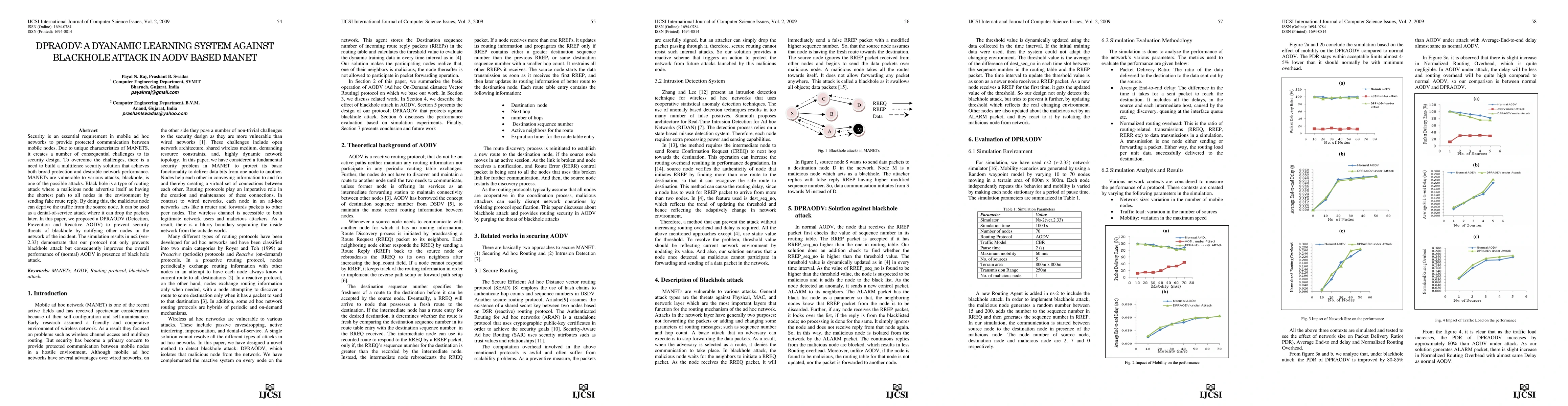 This paper proposes DPRAODV, a dynamic learning system for detecting, preventing, and reacting to blackhole attacks in MANETs, thereby enhancing the security and performance of AODV routing. Simulation results show that DPRAODV effectively mitigates blackhole attacks and improves overall network performance.