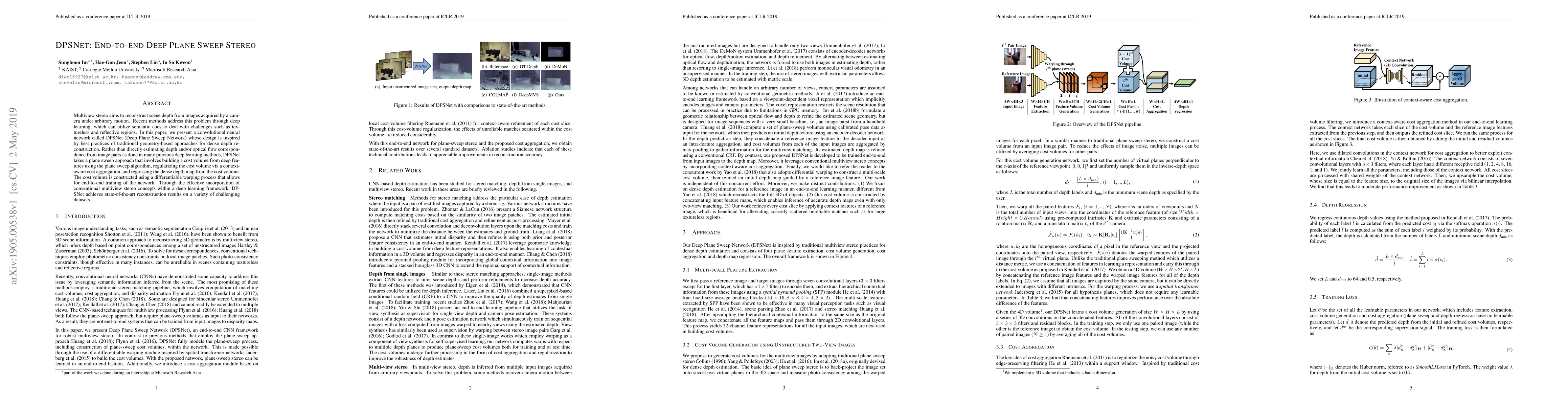 DPSNet is a convolutional neural network designed for dense depth reconstruction using a plane sweep approach, integrating traditional geometry-based methods within a deep learning framework to achieve state-of-the-art results on multiview stereo datasets. It constructs a cost volume from deep features and uses context-aware cost aggregation for improved depth map regression.