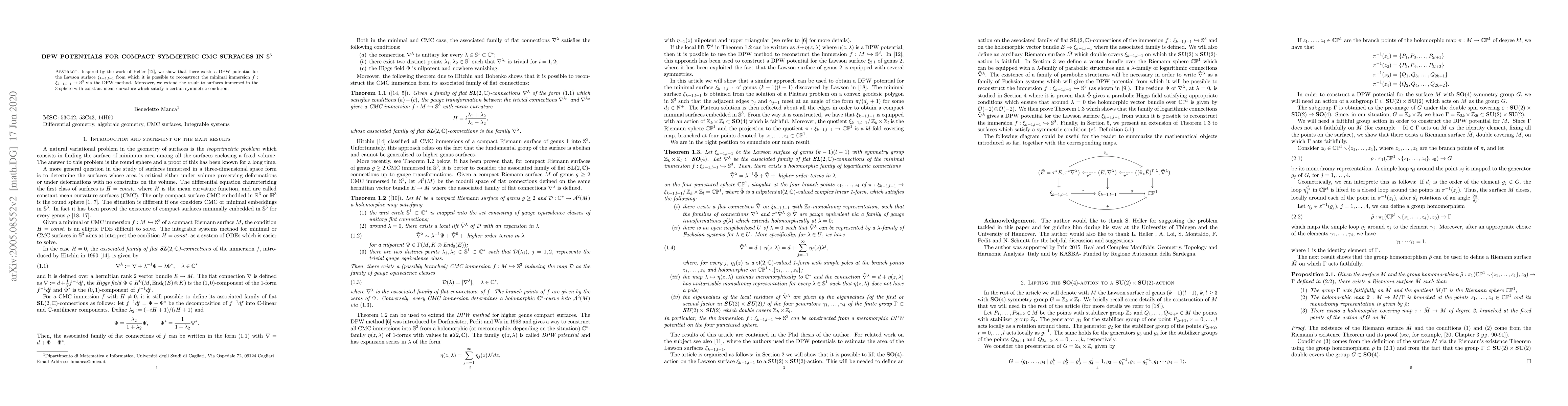 This paper demonstrates the existence of a DPW potential for the Lawson surface $\xi_{k-1, l-1}$ that allows for the reconstruction of its minimal immersion in $\mathbb{S}^3$ using the DPW method, and extends this result to other symmetric CMC surfaces in $\mathbb{S}^3$ meeting specific conditions.