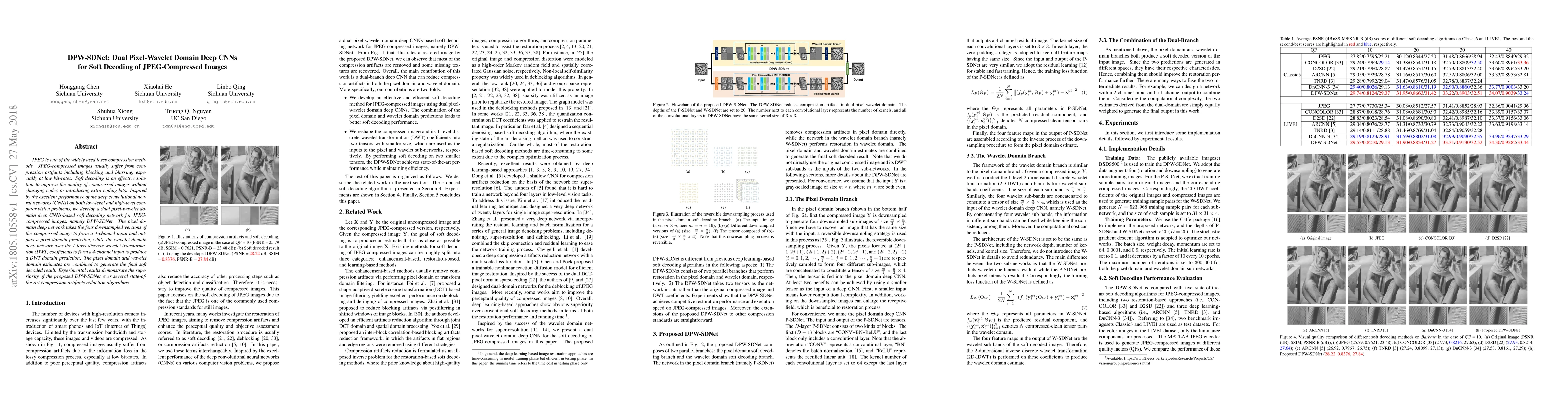 DPW-SDNet combines dual pixel-wavelet domain deep CNNs for soft decoding of JPEG-compressed images, improving compression artifact reduction without altering the codec, outperforming state-of-the-art methods.