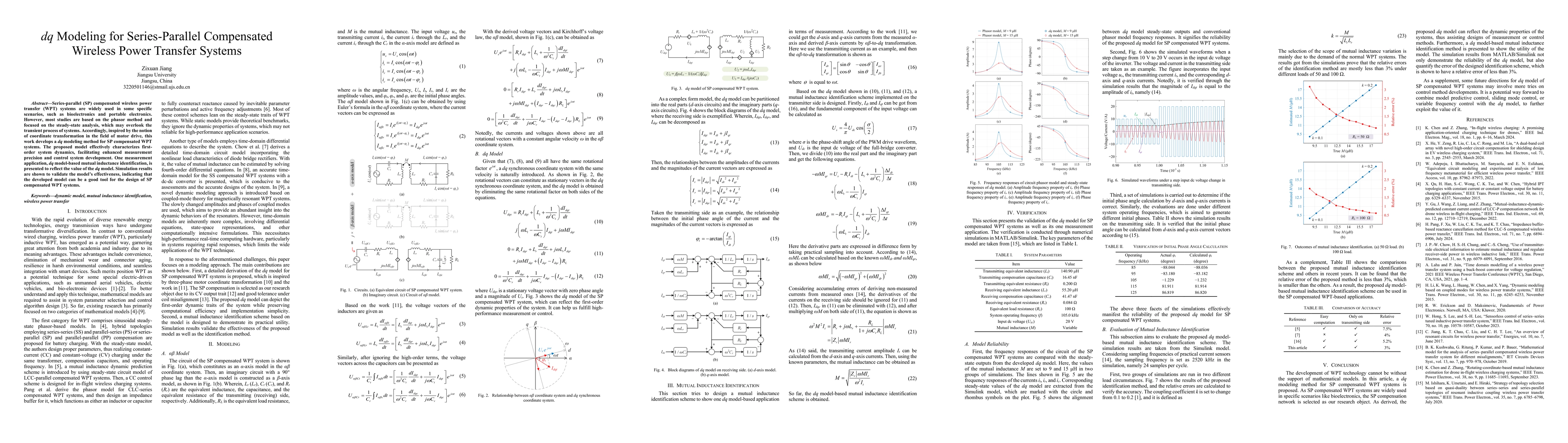Series-parallel (SP) compensated wireless power transfer (WPT) systems are widely used in some specific scenarios, such as bioelectronics and portable electronics. However, most studies are based on the phasor method and focused on the steady-state analysis, which may overlook the transient process of systems. Accordingly, inspired by the notion of coordinate transformation in the field of motor drive, this work develops a dq modeling method for SP compensated WPT systems. The proposed model effectively characterizes first-order system dynamics, facilitating enhanced measurement precision and control system development. One measurement application, dq model-based mutual inductance identification, is presented to reflect the value of the dq model. Simulation results are shown to validate the model's effectiveness, indicating that the developed model can be a good tool for the design of SP compensated WPT systems.