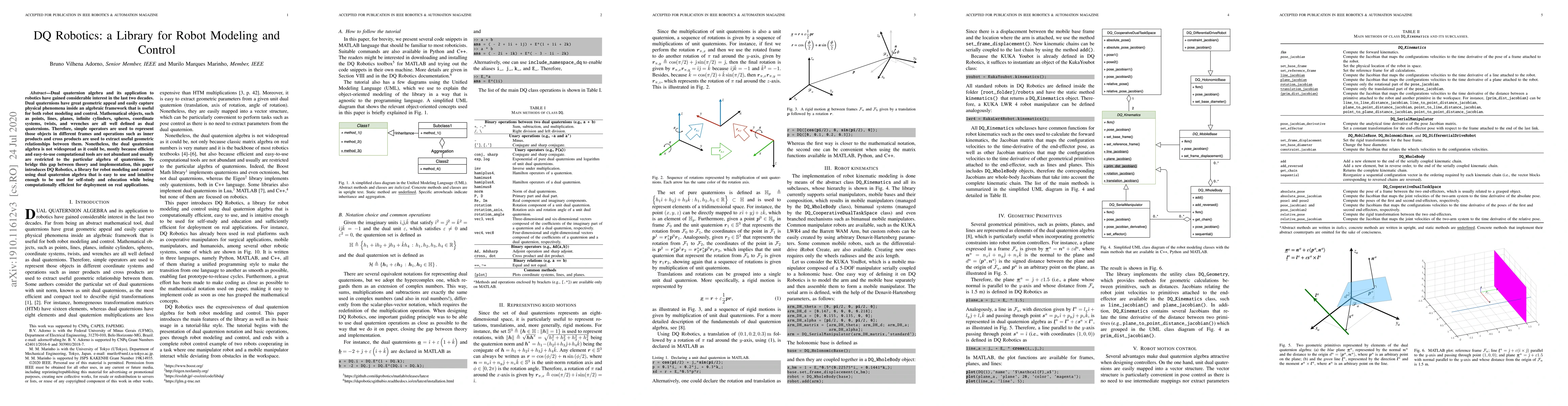DQ Robotics is a library leveraging dual quaternion algebra for robot modeling and control, aiming to simplify the application of this powerful mathematical framework in practical scenarios. It provides intuitive and efficient tools for representing and manipulating geometric objects, bridging the gap between theoretical benefits and practical implementation.