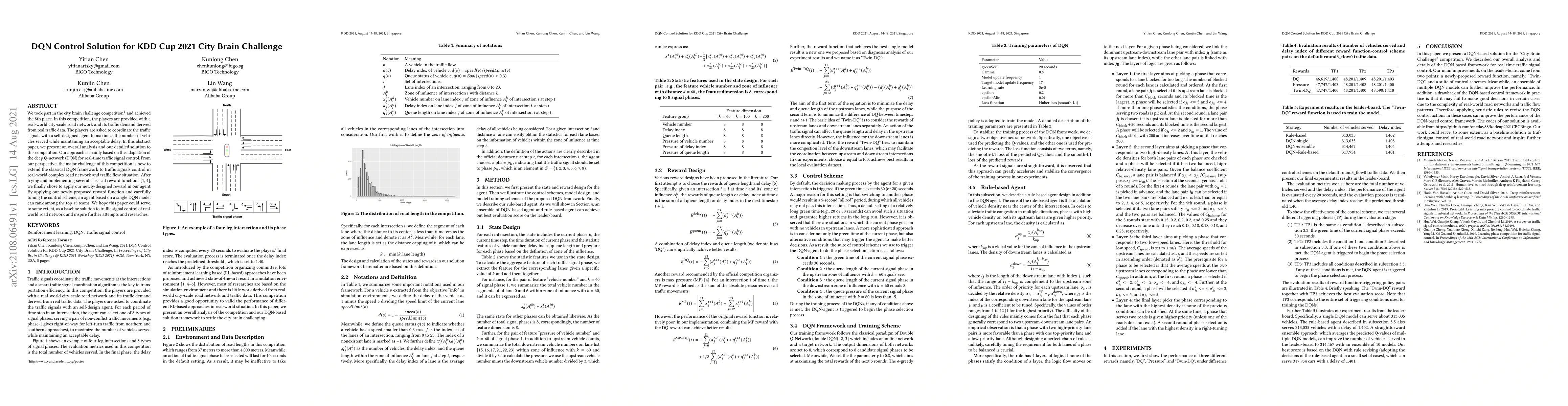 We took part in the city brain challenge competition and achieved the 8th place. In this competition, the players are provided with a real-world city-scale road network and its traffic demand derived from real traffic data. The players are asked to coordinate the traffic signals with a self-designed agent to maximize the number of vehicles served while maintaining an acceptable delay. In this abstract paper, we present an overall analysis and our detailed solution to this competition. Our approach is mainly based on the adaptation of the deep Q-network (DQN) for real-time traffic signal control. From our perspective, the major challenge of this competition is how to extend the classical DQN framework to traffic signals control in real-world complex road network and traffic flow situation. After trying and implementing several classical reward functions, we finally chose to apply our newly-designed reward in our agent. By applying our newly-proposed reward function and carefully tuning the control scheme, an agent based on a single DQN model can rank among the top 15 teams. We hope this paper could serve, to some extent, as a baseline solution to traffic signal control of real-world road network and inspire further attempts and researches.