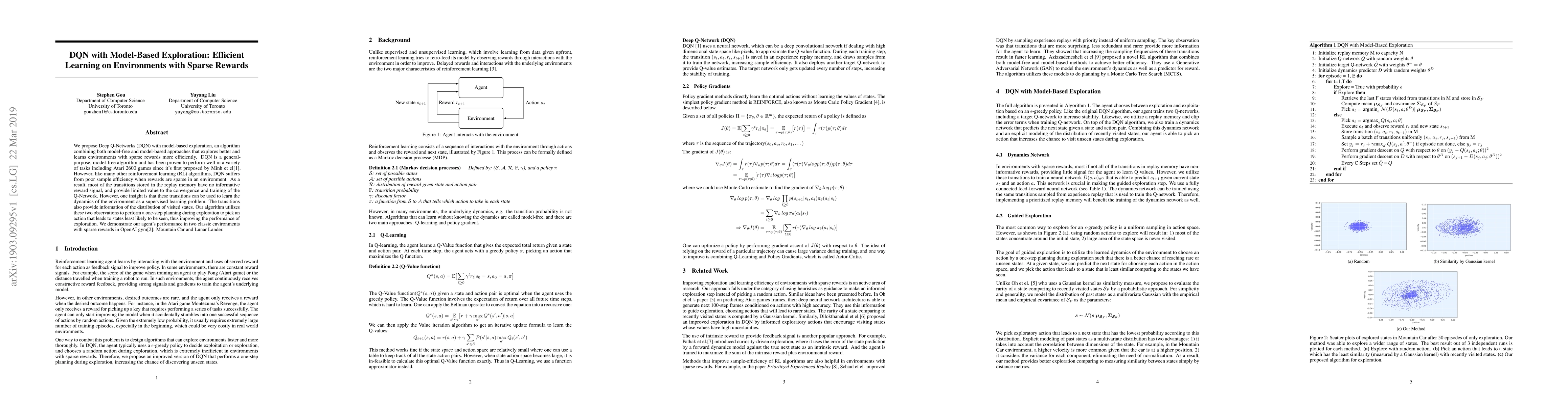 This paper proposes a DQN algorithm that integrates model-based exploration to enhance learning efficiency in environments with sparse rewards. By combining model-free and model-based approaches, the algorithm improves exploration and performance in tasks like Mountain Car and Lunar Lander.