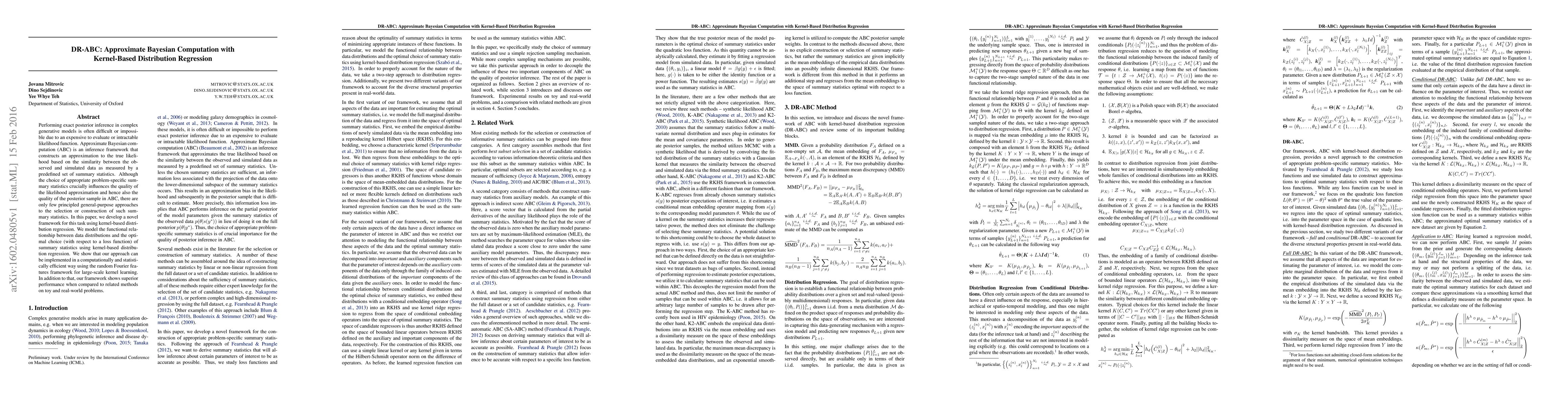 This paper introduces DR-ABC, a novel framework for approximate Bayesian computation using kernel-based distribution regression to determine optimal summary statistics. The method leverages the random Fourier features framework for efficient large-scale kernel learning, demonstrating superior performance over existing methods on both synthetic and real-world datasets.